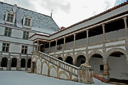 - L'aile occidentale où se détache l'ordonnance classique de la galerie à deux étages abritait les appartements de réception.