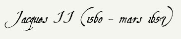 Deuxième fils de Jacques Ier et de Renée de Savoie, Jacques II est né dans le berceau familial à la Bastie d'Urfé.