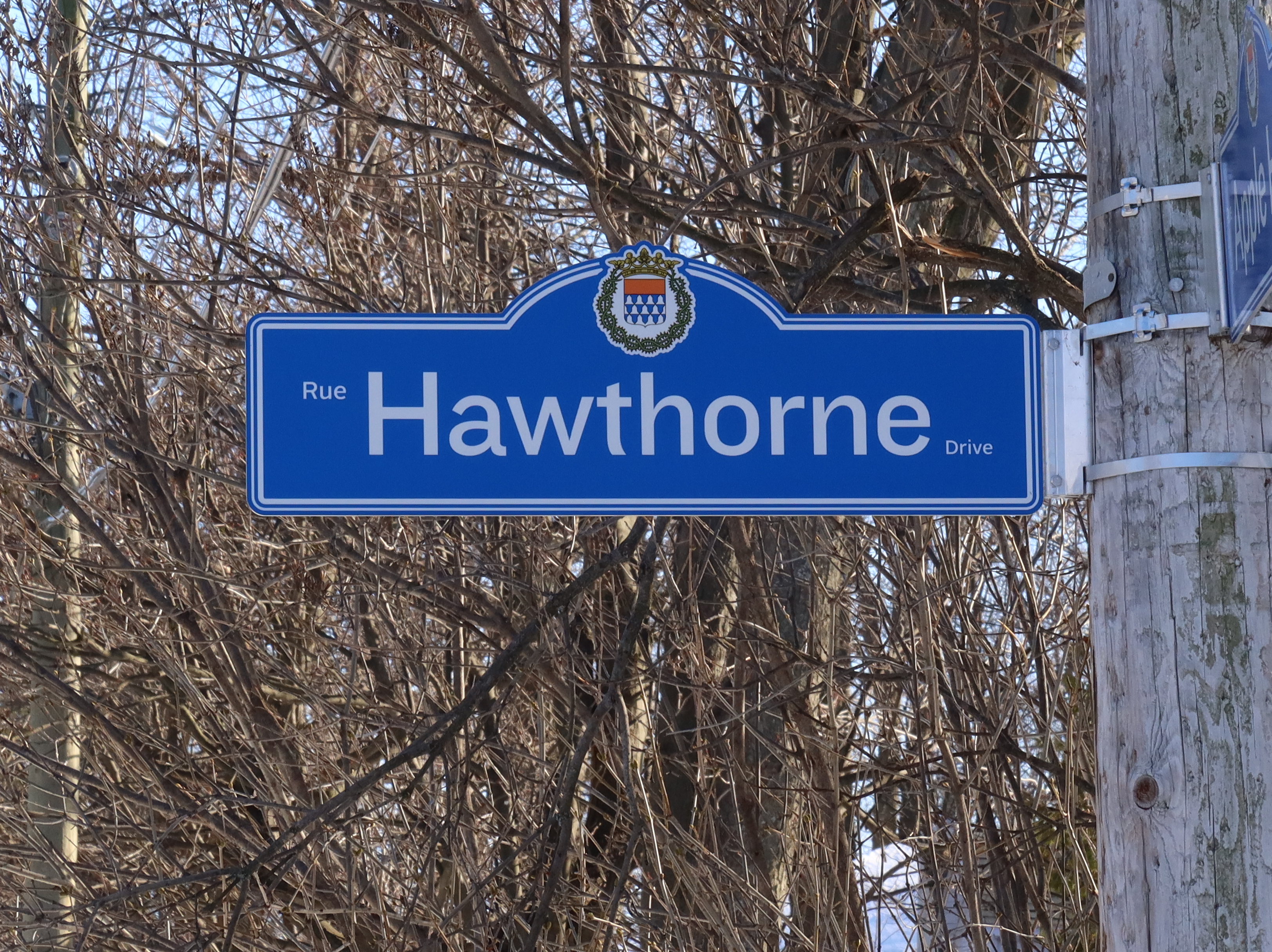 Third generation steet sign, Hawthorne Drive, photo: March 2021