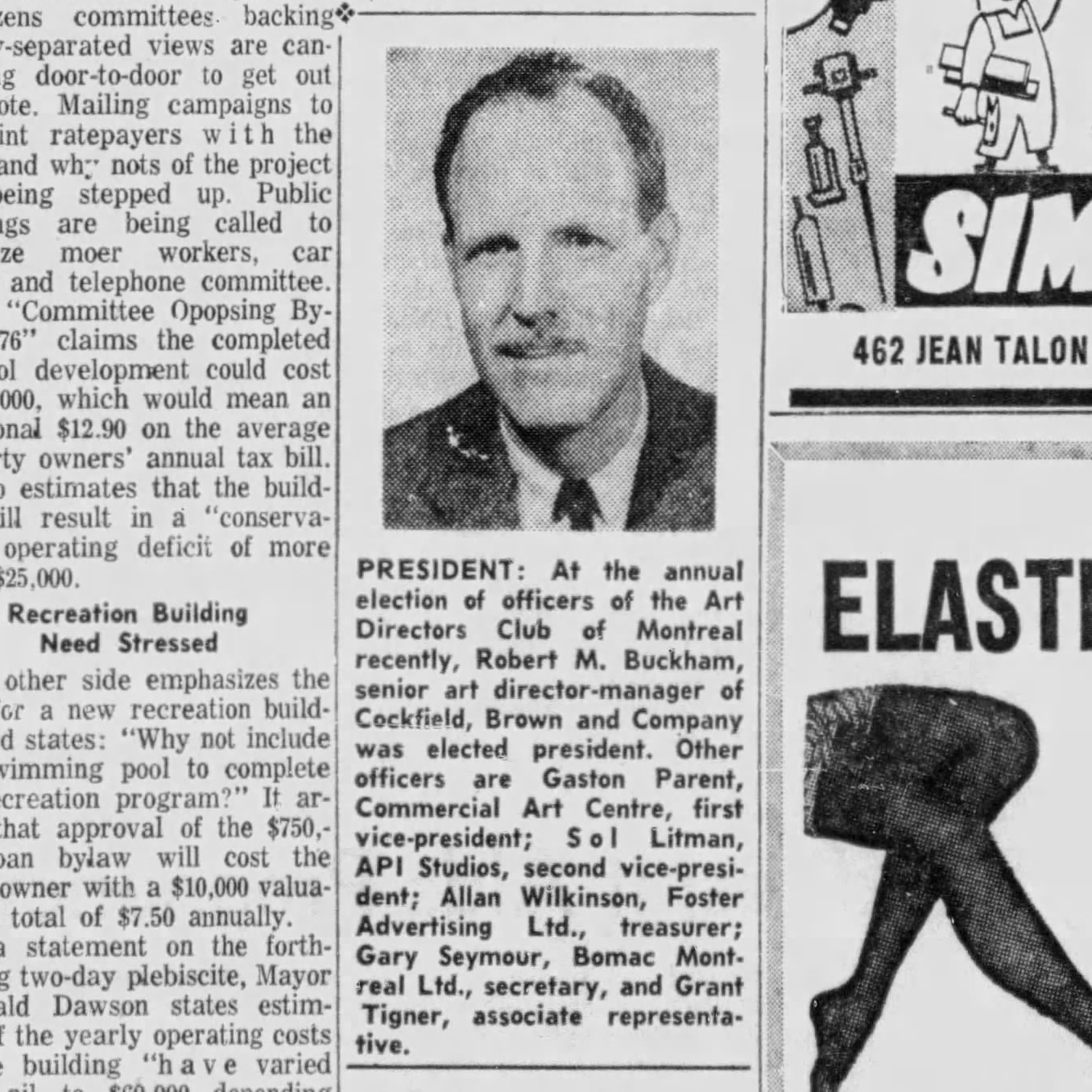 Robert M. Buckham senior art director-manager of Cockfield, Brown and Co., The Gazette, Oct. 14, 1961