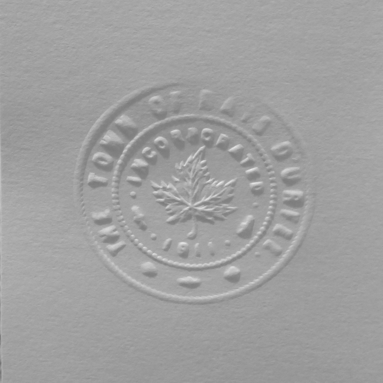The seal of the town was until 1960 a maple leaf surrounded by the words "THE TOWN OF BAIE D'URFE, incorporated 1911". The original seal can be seen in the photo below. Note that the Canadian flag with the maple leaf did not exist yet in 1911 and there is no relation between this seal and the flag.