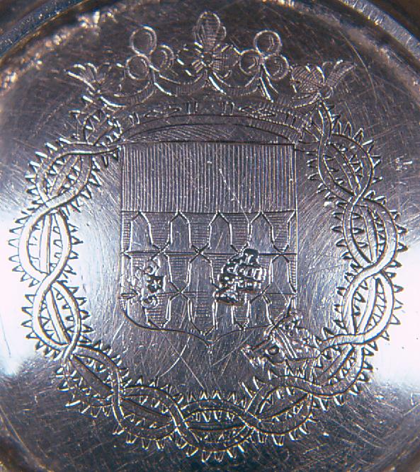 The bottom of François d’Urfé’s silver gobelet with his coat of arms, source: patrimoine-culturel.gouv.qc.ca