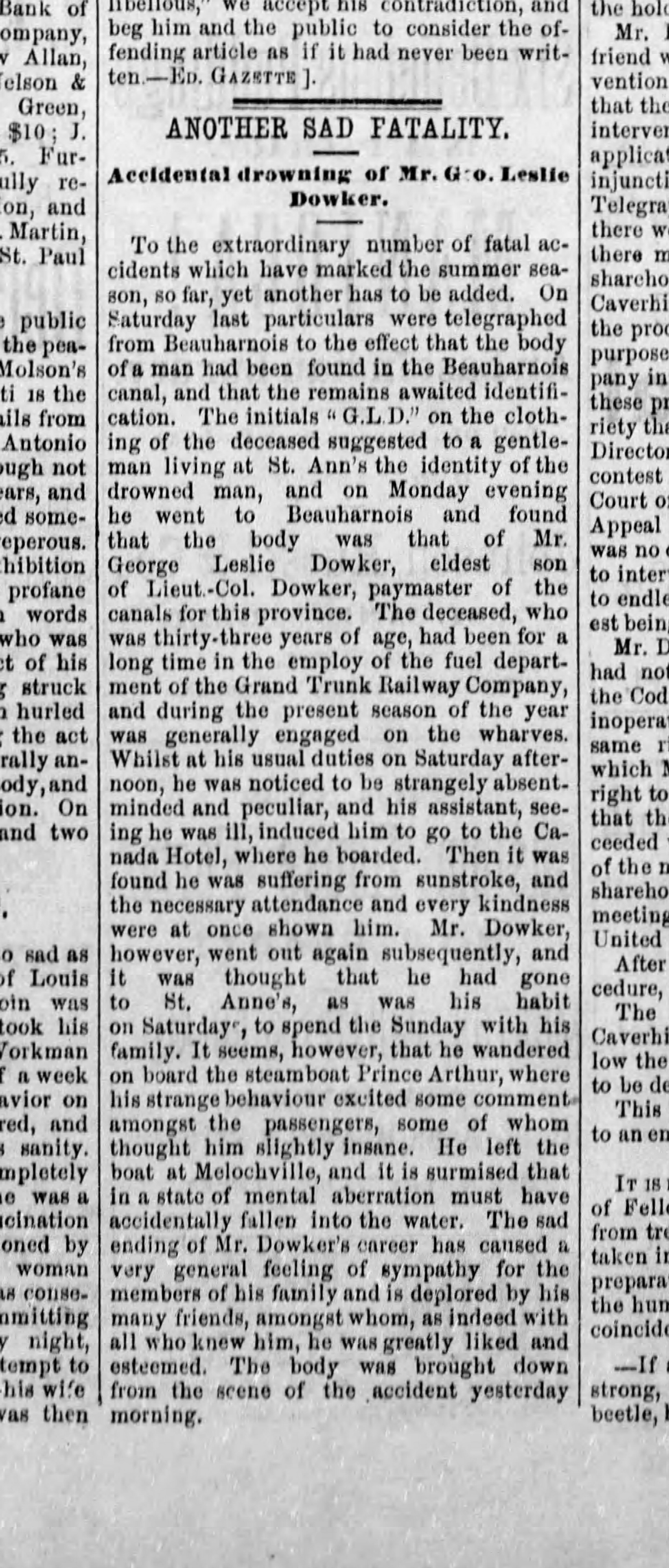 George Woodcock Dowker (1825-1910) immigrates from Salton, York, England to New York in 1843, to Montreal in 1847