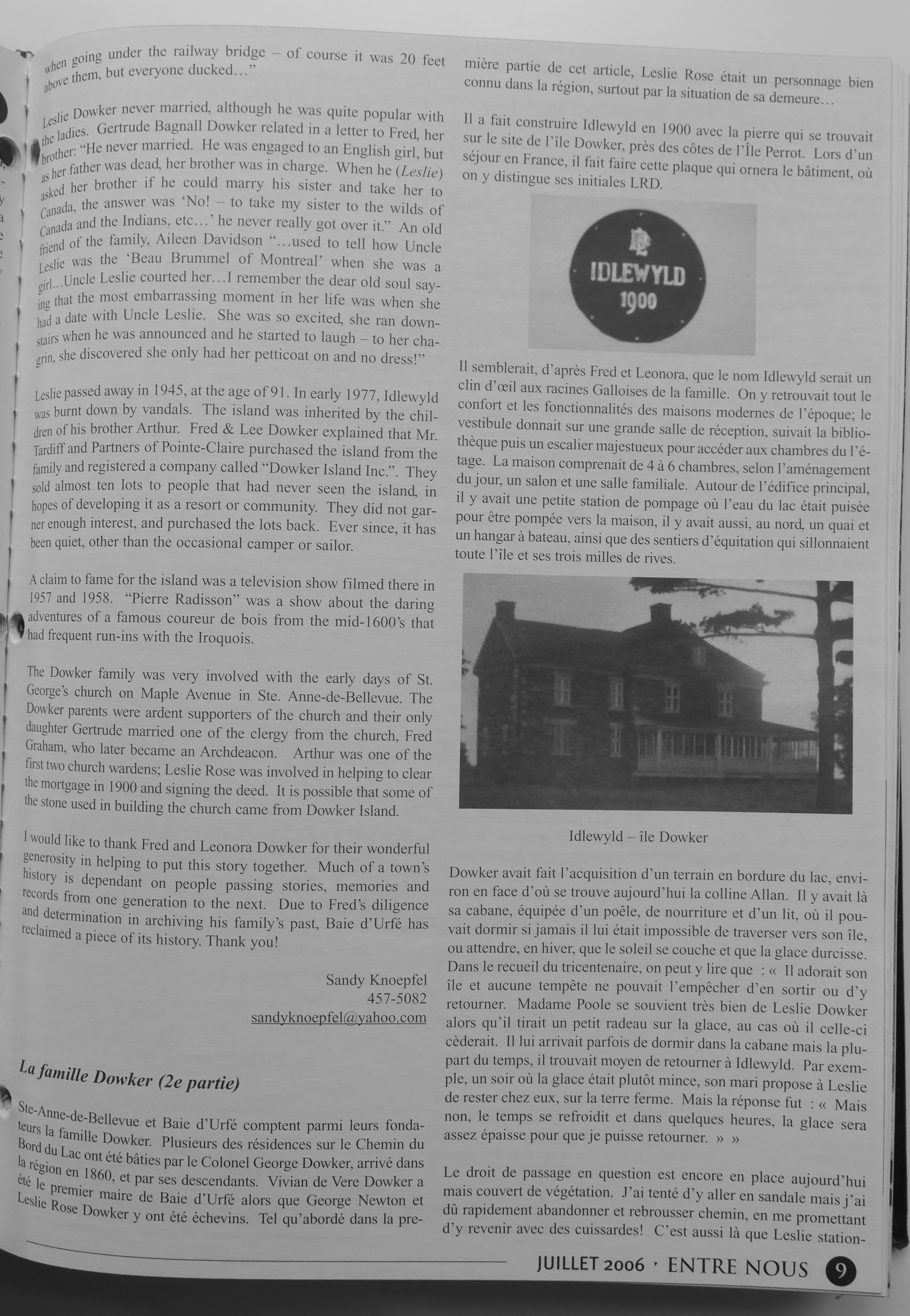 Sandy Knoepfel wrote in the summer of 2006 two articles about the Dowker family in News & Views.