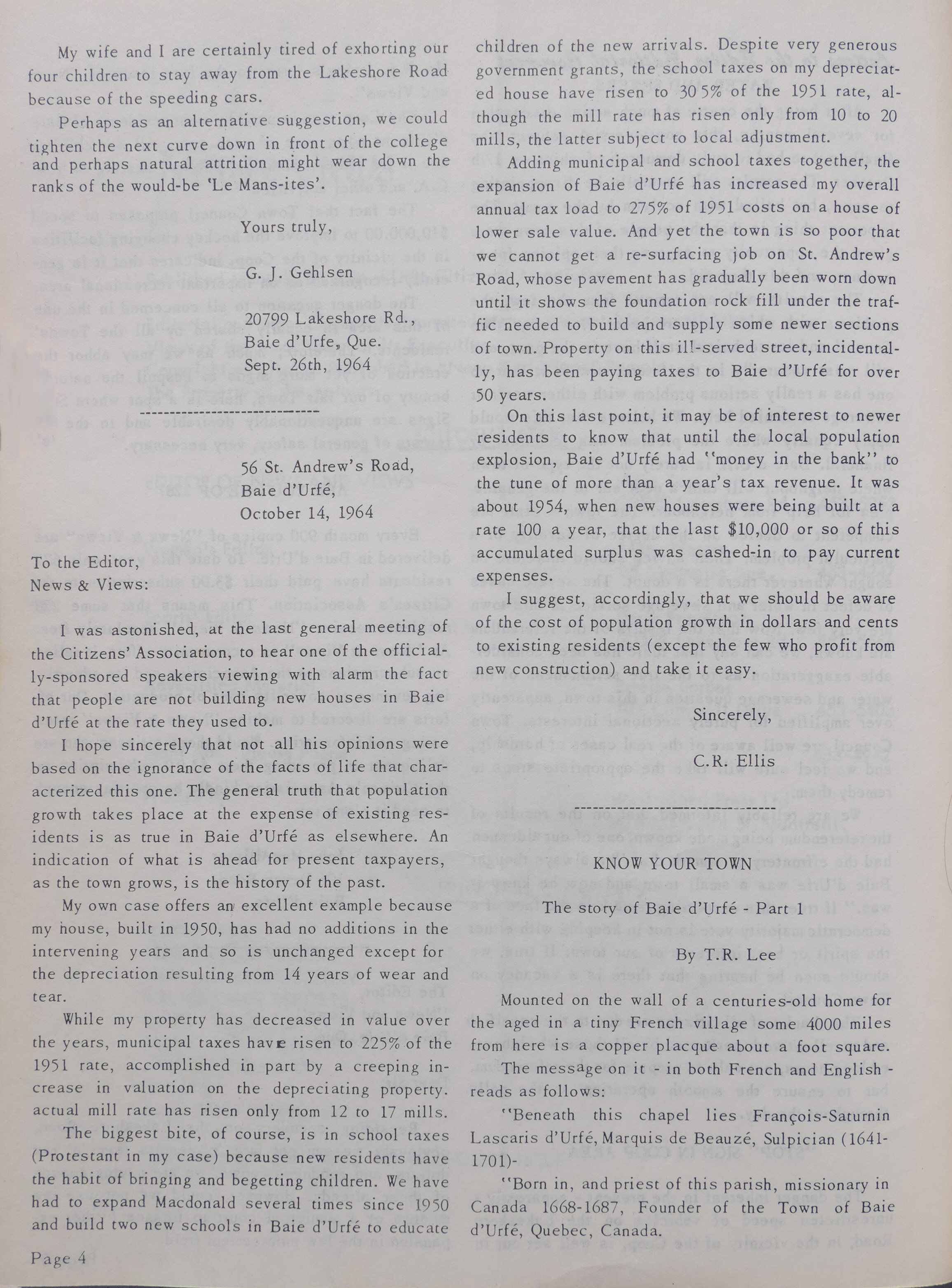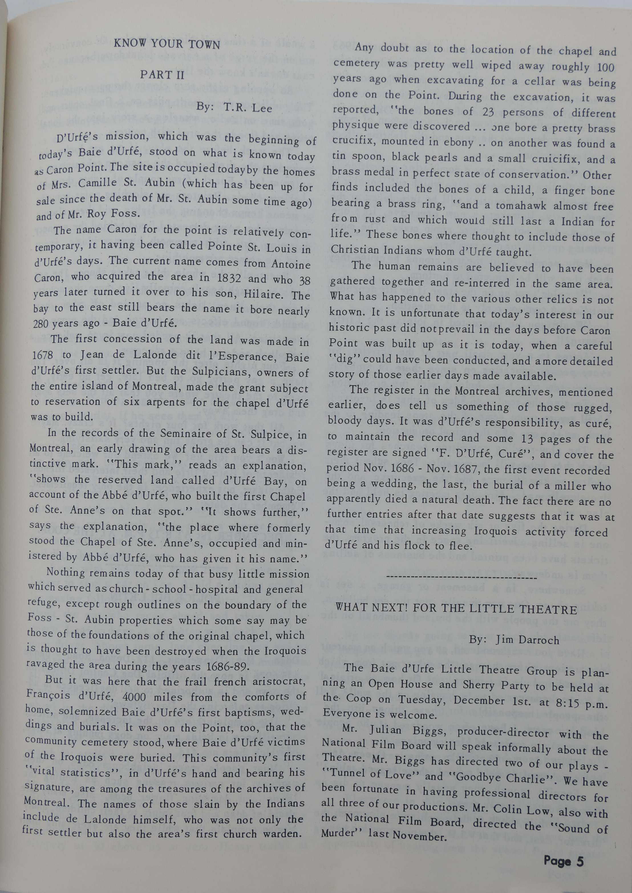 Know your town: The story of Baie d'Urfé, part 3, N&V Dec. 1964