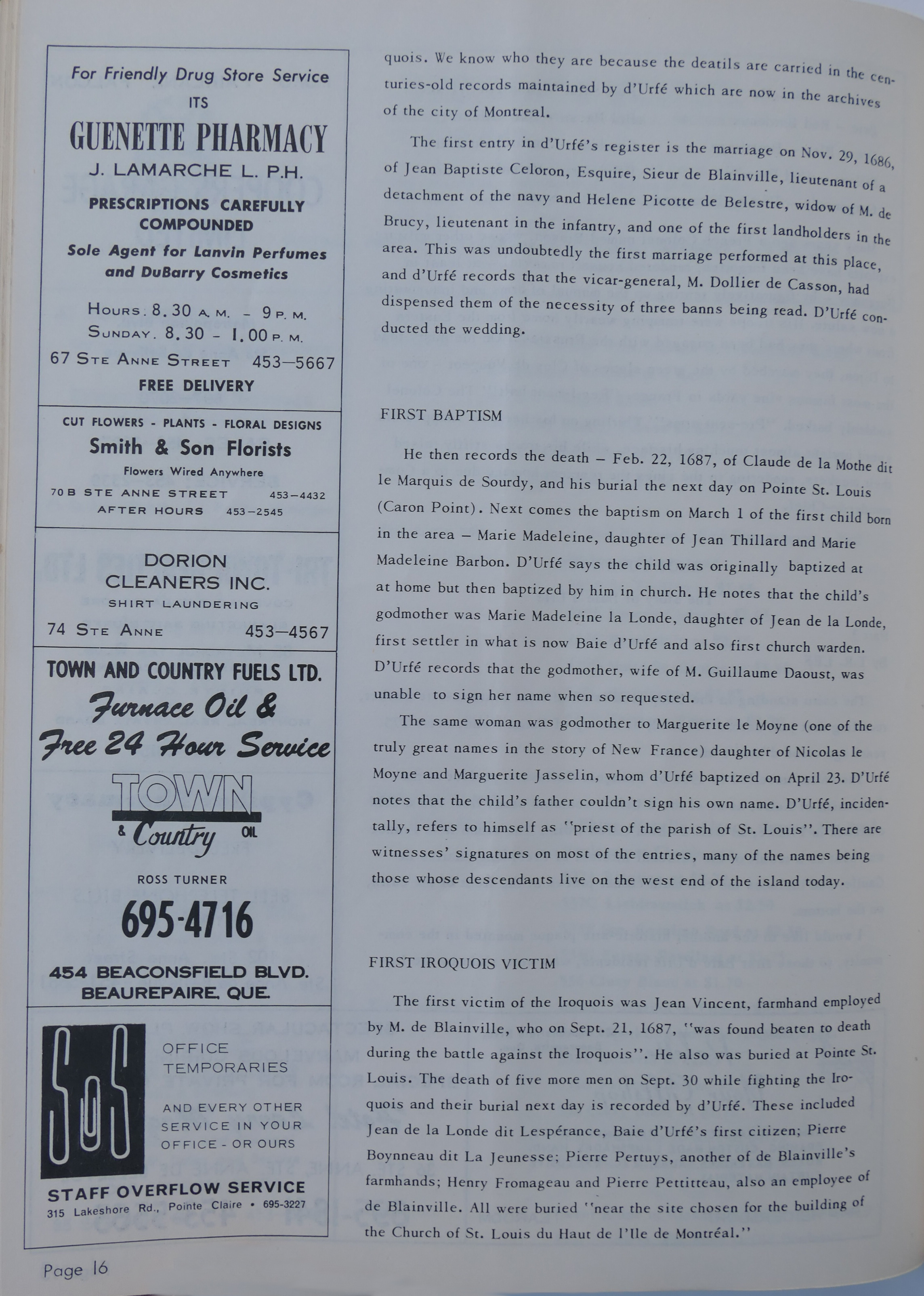 ->back to "A HISTORY OF THE TOWN OF BAIE-D'URFE, 1977 edition"