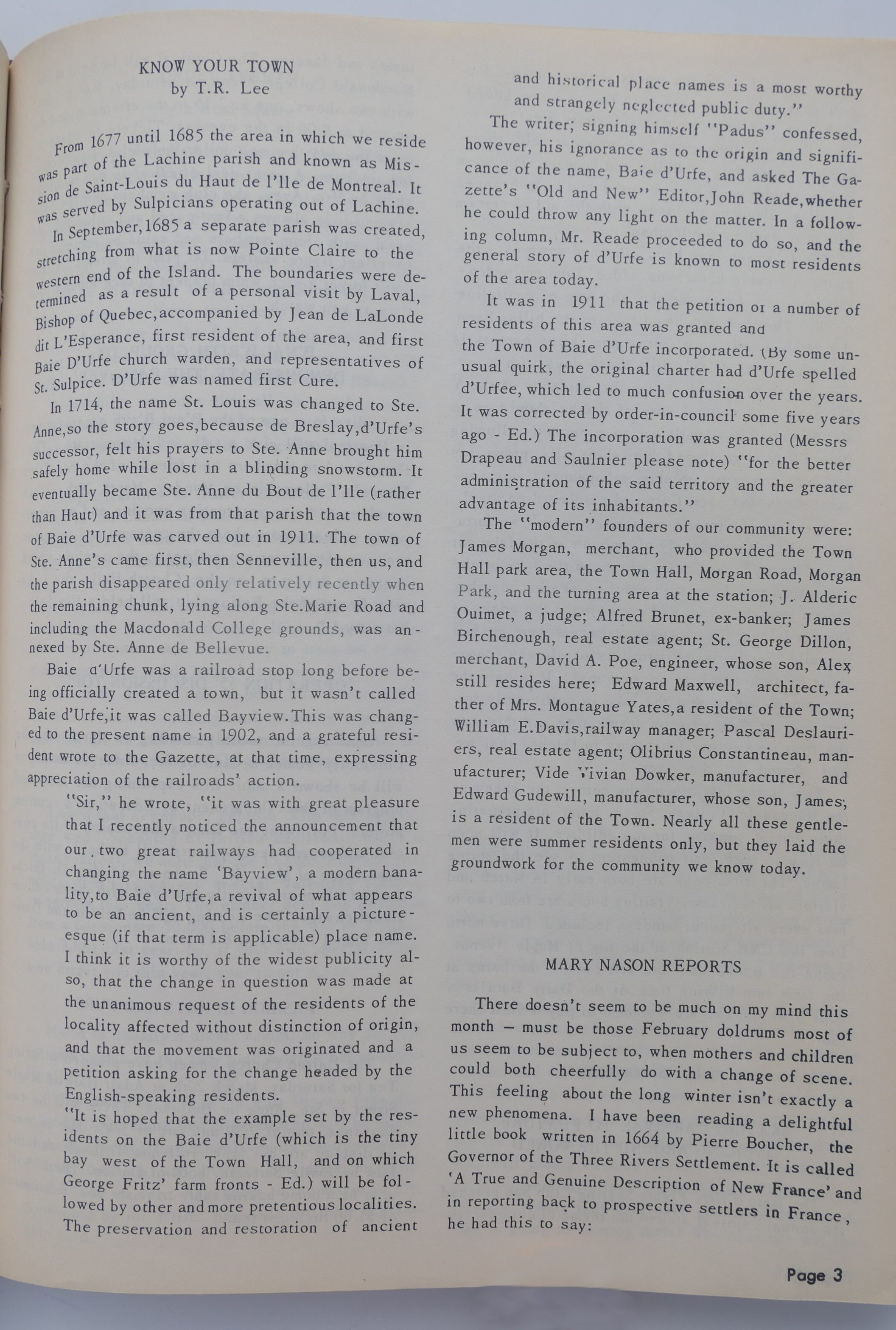 Know your town: The story of Baie d'Urfé, part 4, N&V Feb. 1965