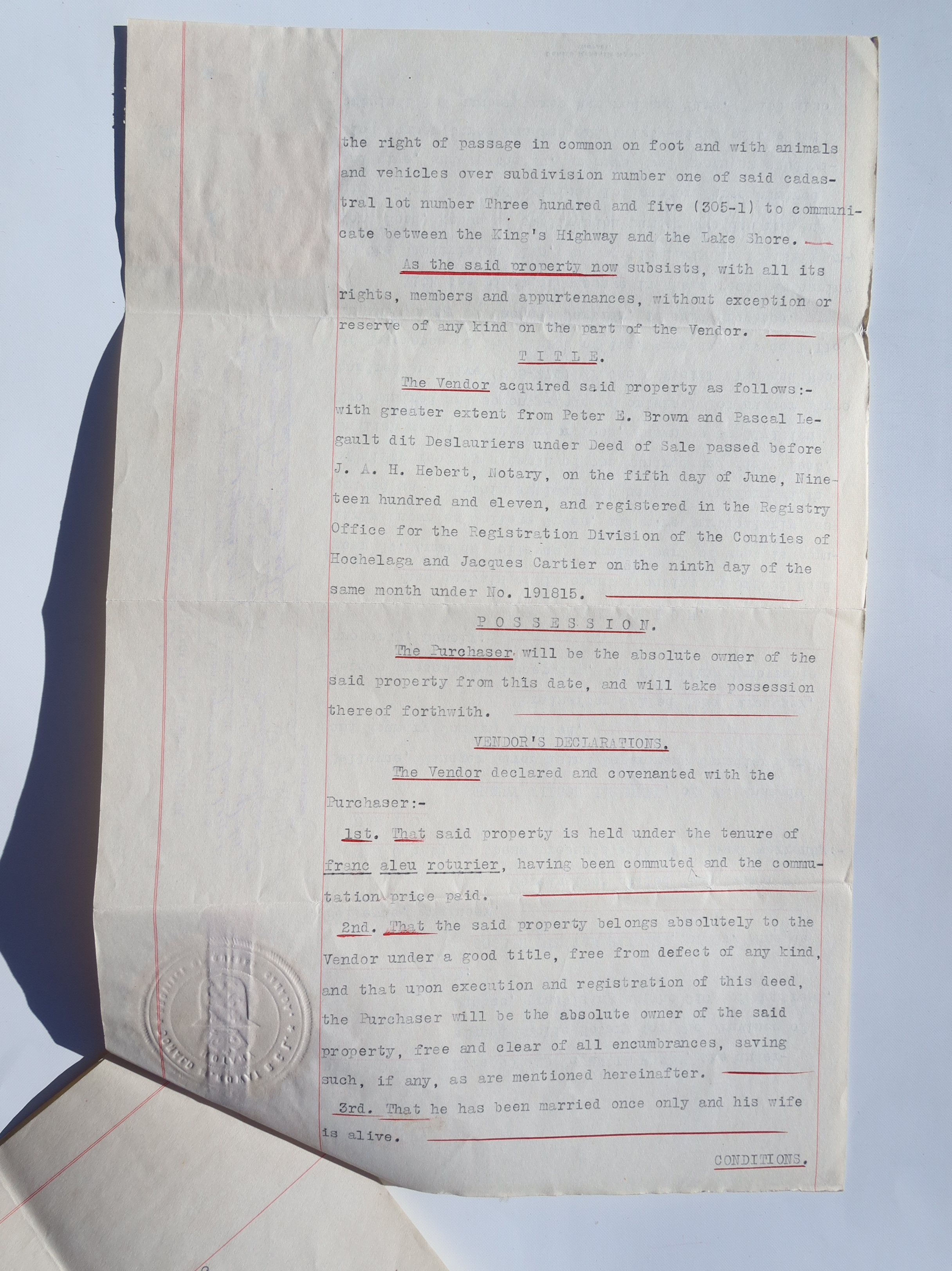 Sale by Joseph William Hayward to Henry Wilson Hartnell, signed June 29, 1922.