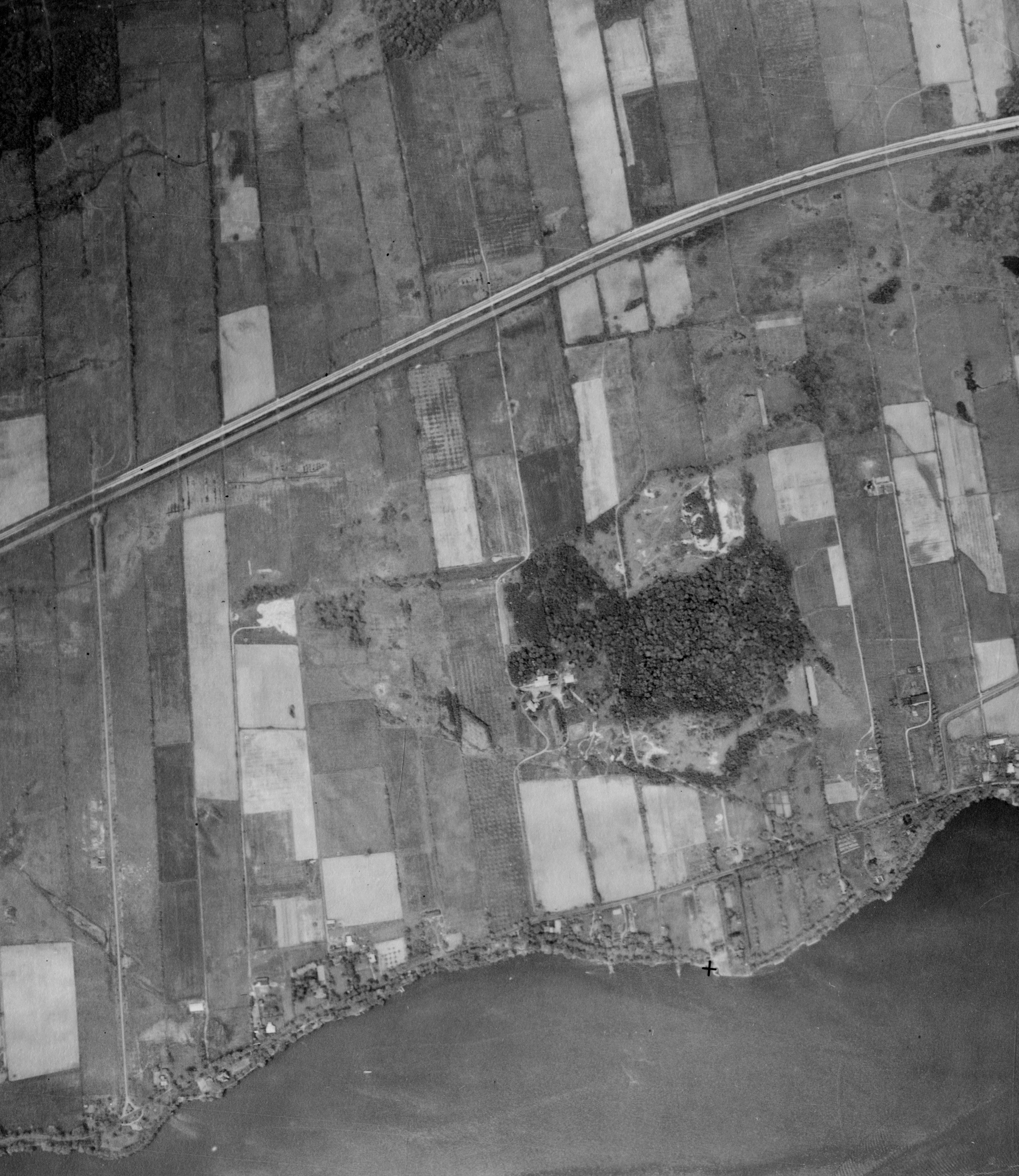 Aug. 1948, the James Morgan turning circle is still there, now squeezed between railroad tracks and highway, photo: The National Air Photo Library - Natural Resources Canada