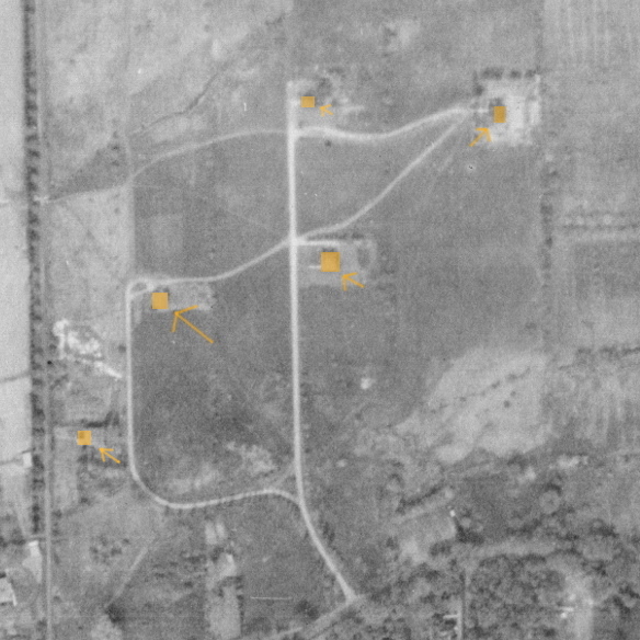 Below is a comparison of a 2019 aerial photo from google side by side with a photo from 1948. I have marked the buildings that are still standing. Google has better and sharper aerial photos but they are taken during the summer and the sheds below trees would not be visible.