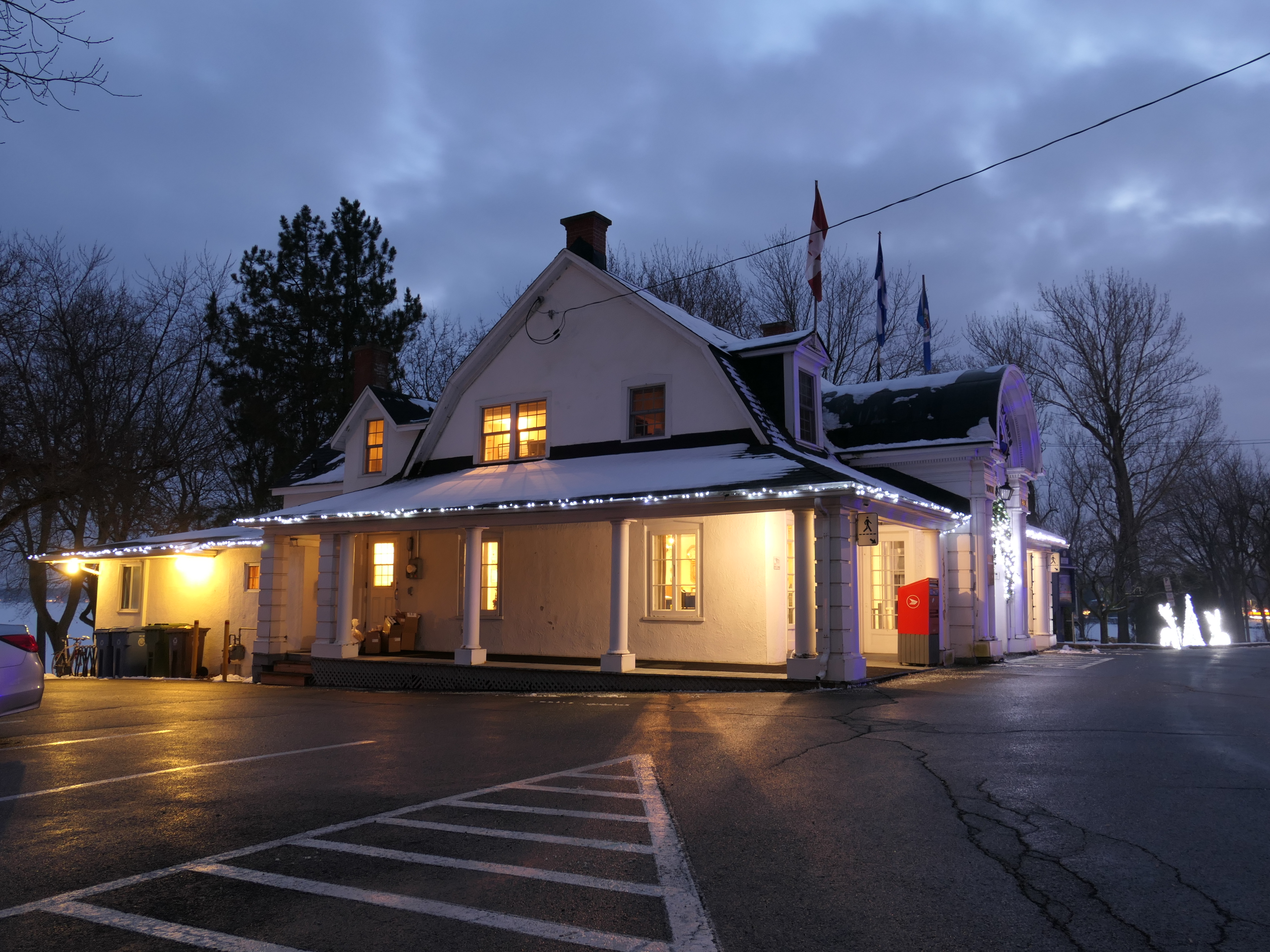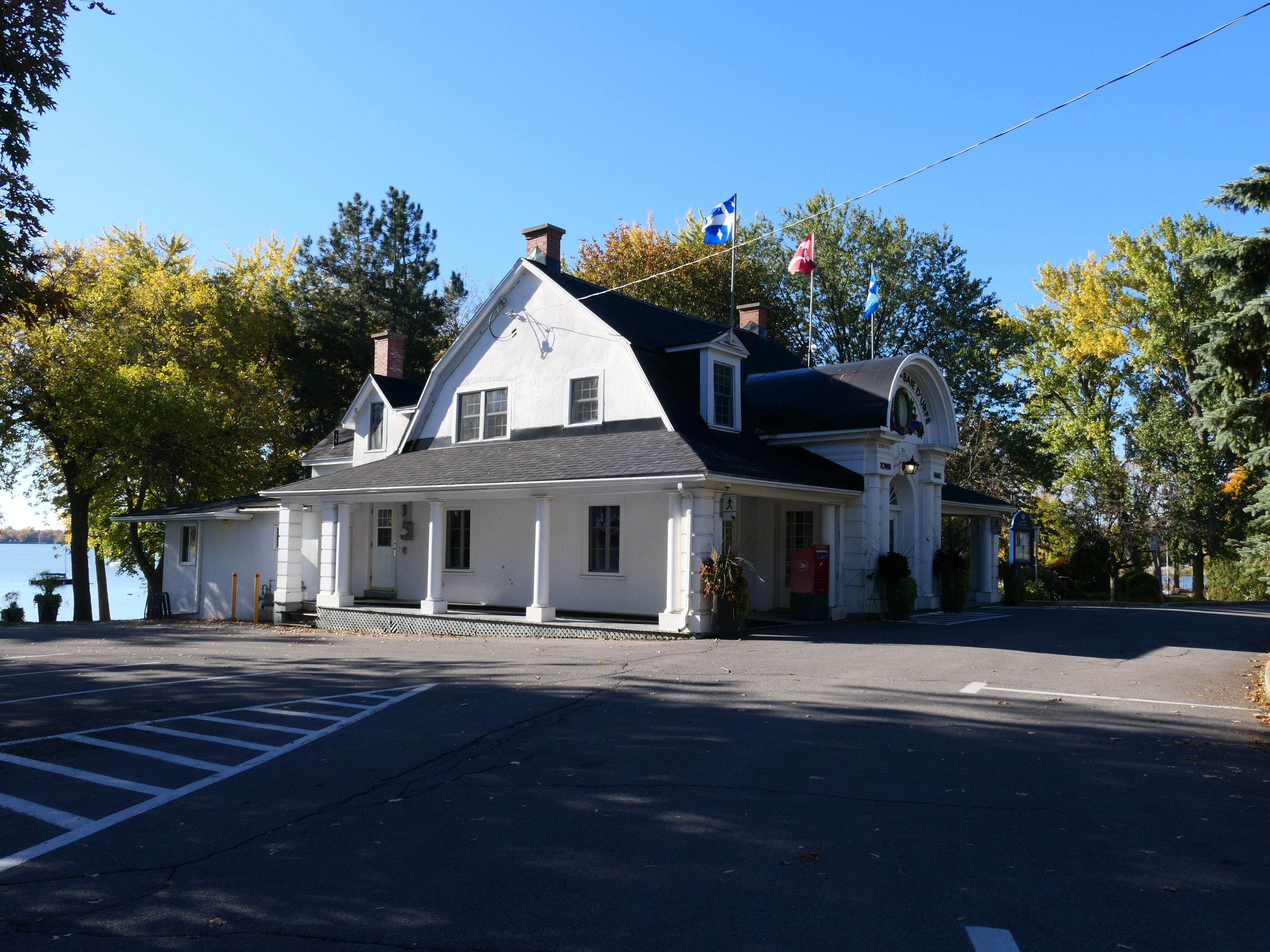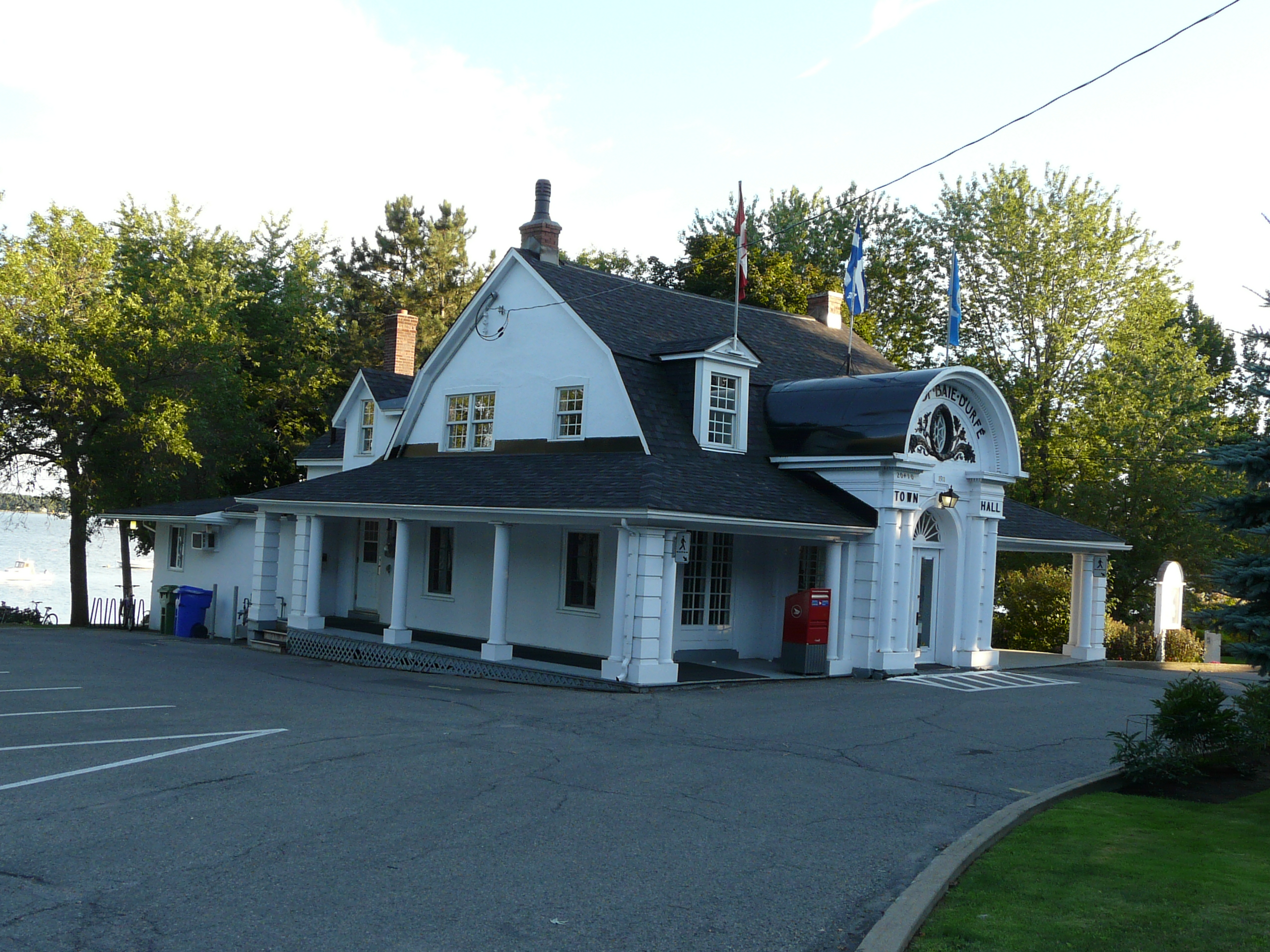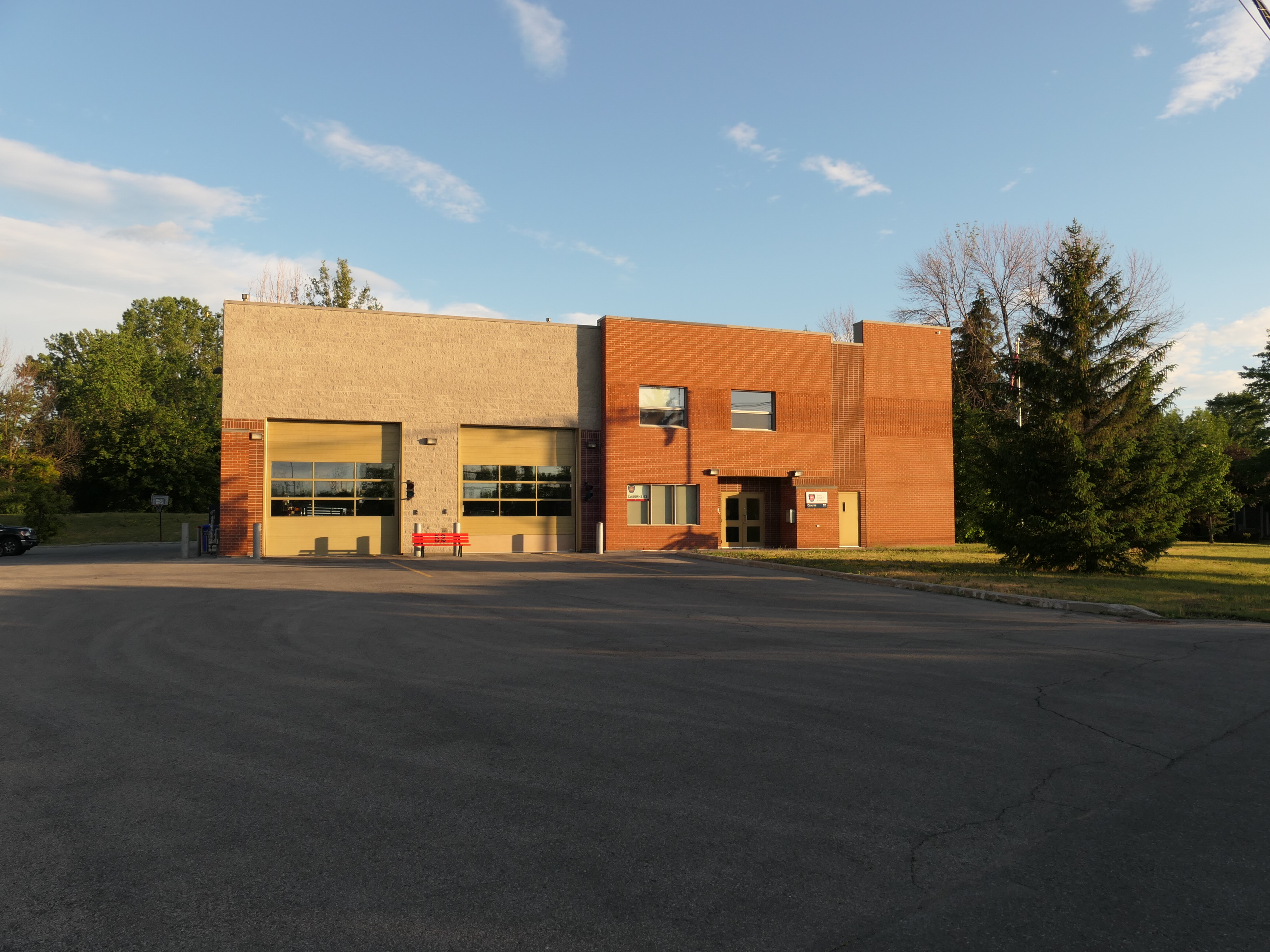 Baie-D'Urfé had at the time a volunteer fire department and parts of the new building were used for the fire department. The volunteer fire department became a casualty of the the Montreal merger years. As you can see in the below aerial images there wasn't a separate fire station building in 2005. The building of the Montreal fire department at 330 Surrey was built in 2006.
