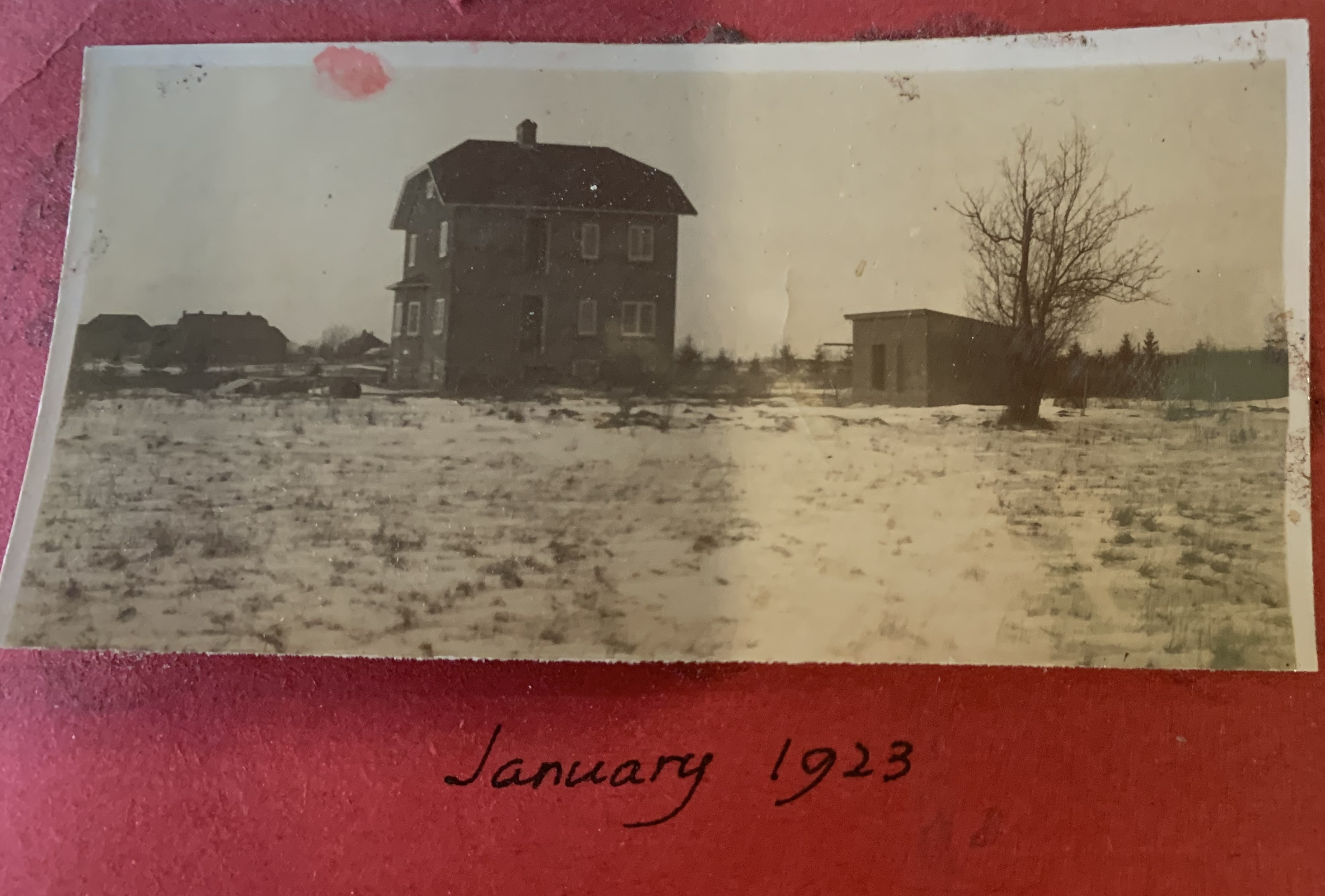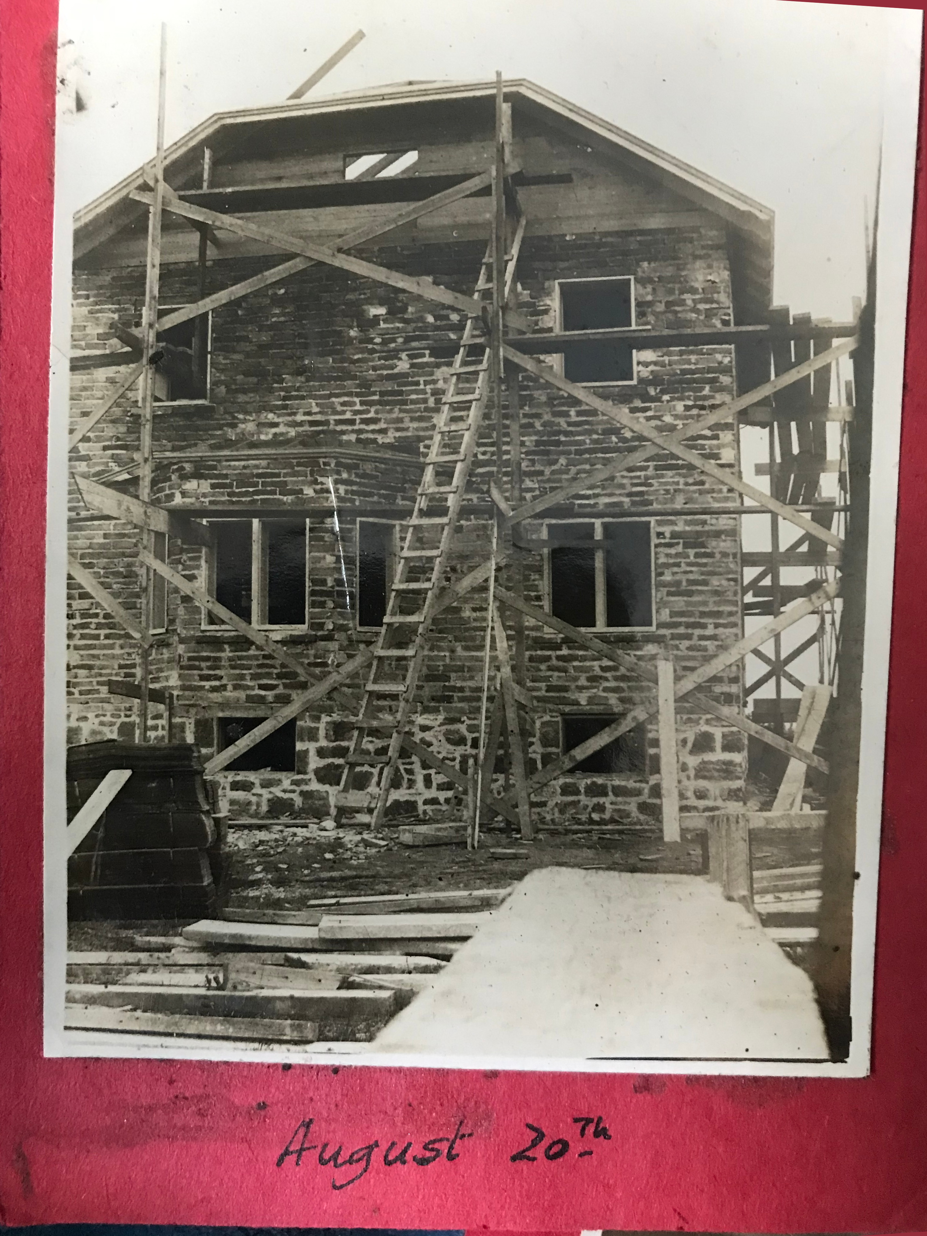 What is today #20 Picardy used to be two separate houses right next to each other. The current owner bought, what was then 20/22 Picardy in November 2008, and interconnected the two houses completely to make one house. The back of the house with square foundations is the oldest of all the buildings. It was built around 1898. It predates the Maxwelton farm. The front with rectangular foundations was added in 1947. Marcel Mailloux came as a herdsman