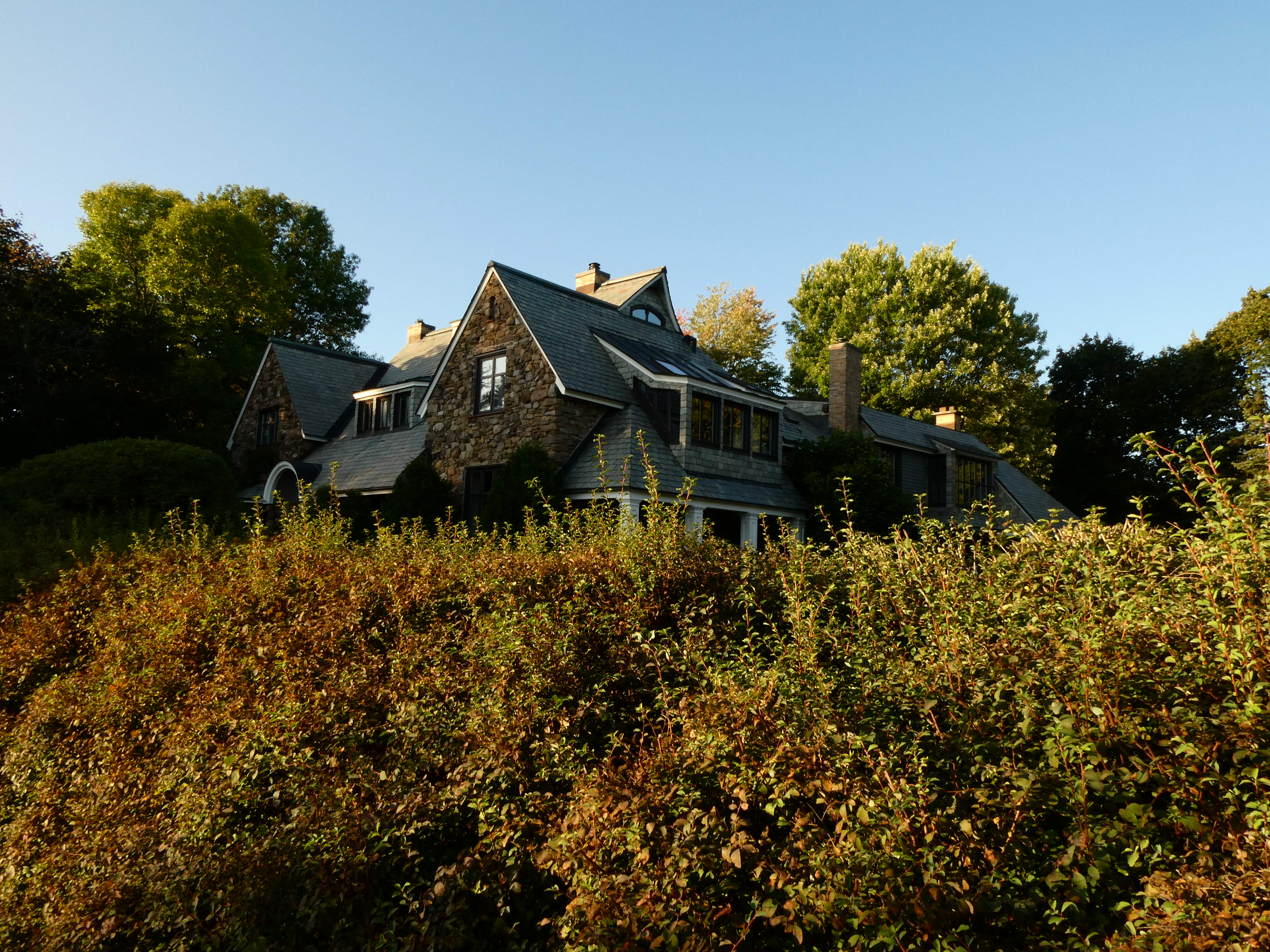 Grass and a few bushes were plated to prevent erosion of the earth besides the road. A google street-view photo from 2009 shows what the Morgan entrance looked like.