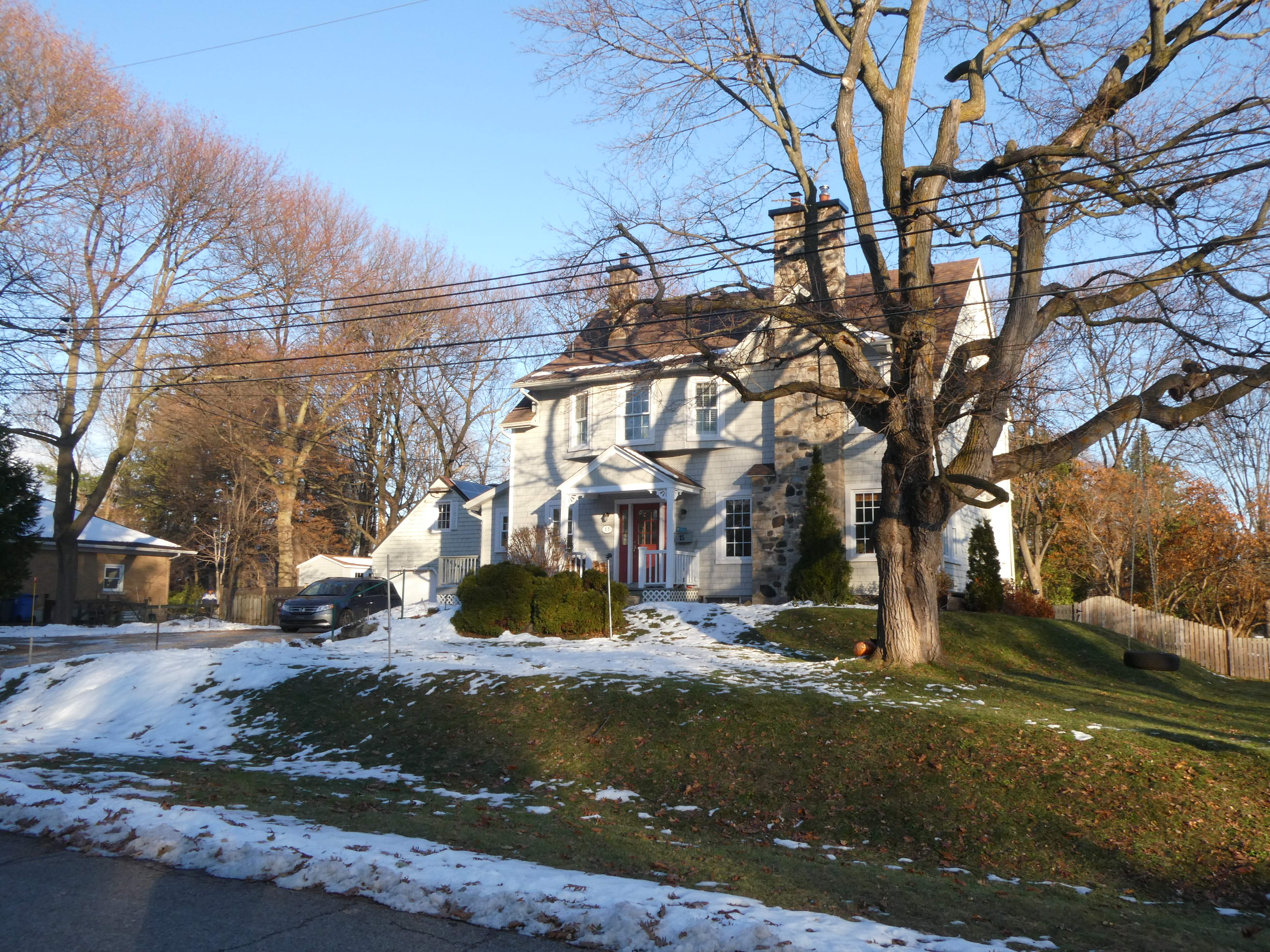 The Maxwelton farmhouse, today 211 Oakridge, and the two houses for the farm employees, today 20 Picardy, had all an address on Lakeshore. The Gatehouse was 20183 Lakeshore, the farmhouse was 20185 Lakeshore and the house(s) for the employees was 20187 Lakeshore. Those are all consecutive uneven numbers indicating that those were houses on the northern side of Lakeshore. The farmhouse and the house(s) for the farm employees stood of course physically where they still stand today but Oakridge and Picardy did not exist. All houses had an address on Lakeshore, the only official road in this area. This is one of the reasons why Lakeshore house numbers seem today somewhat random with large "spaces" between the numbers.