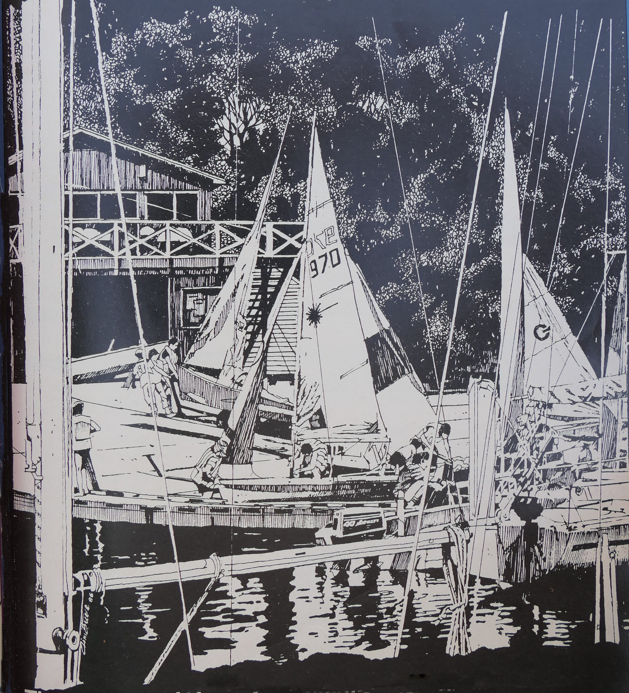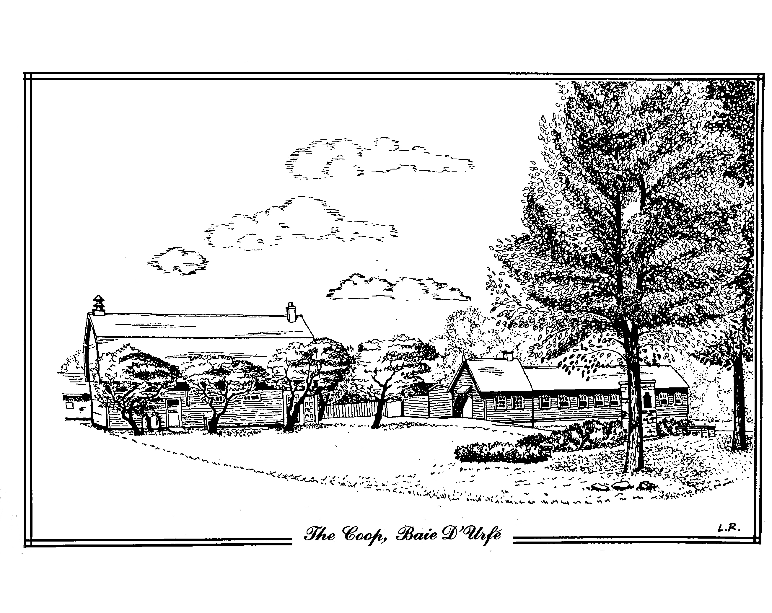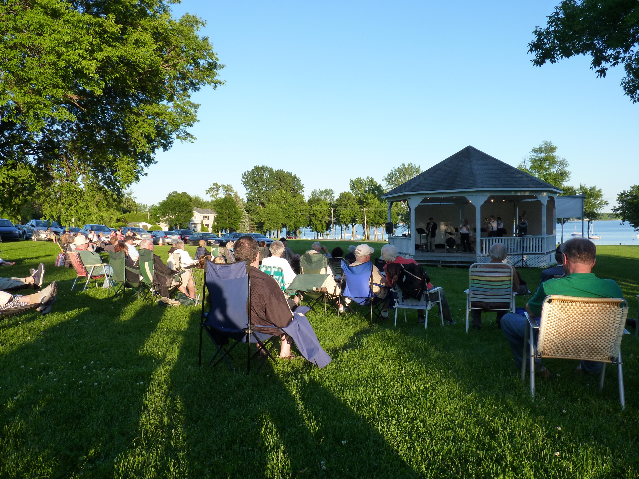 Baie-D'Urfe summer concerts, illustartion by Tony Price, 1993, note: concerts are actually held in the Red Barn in case of rain