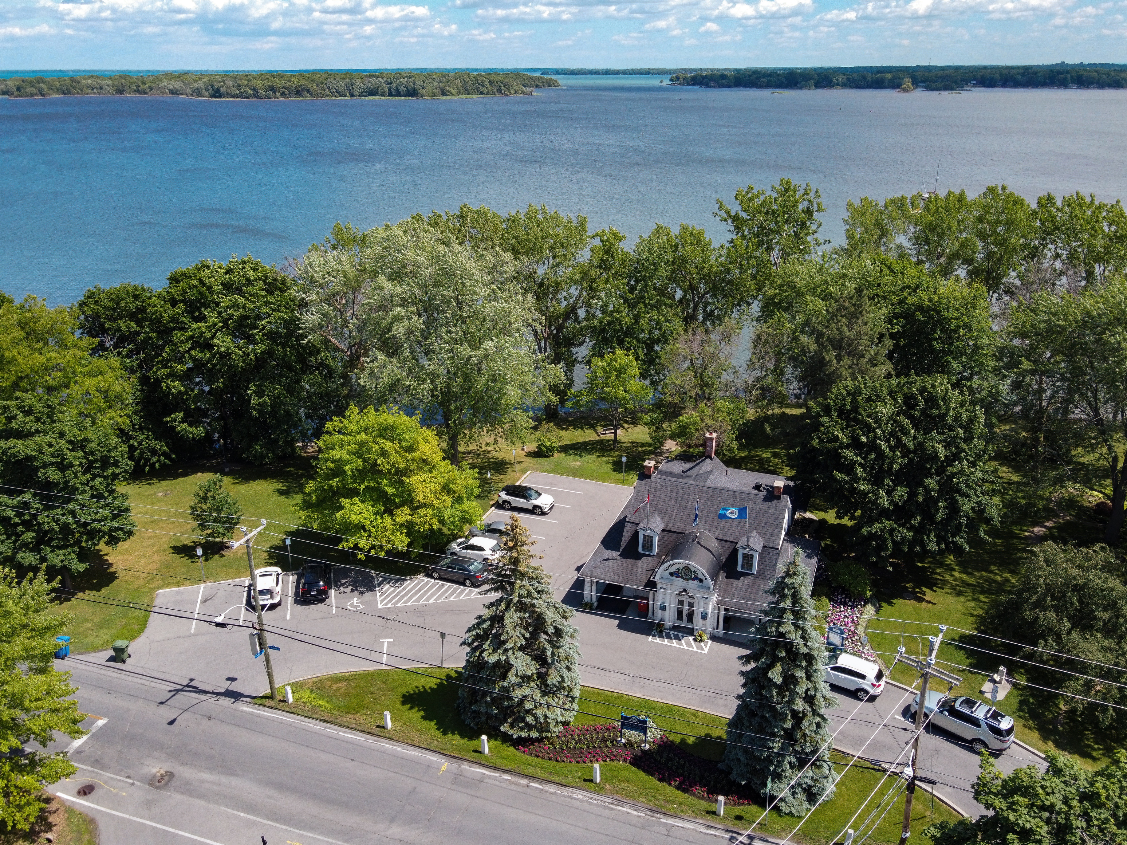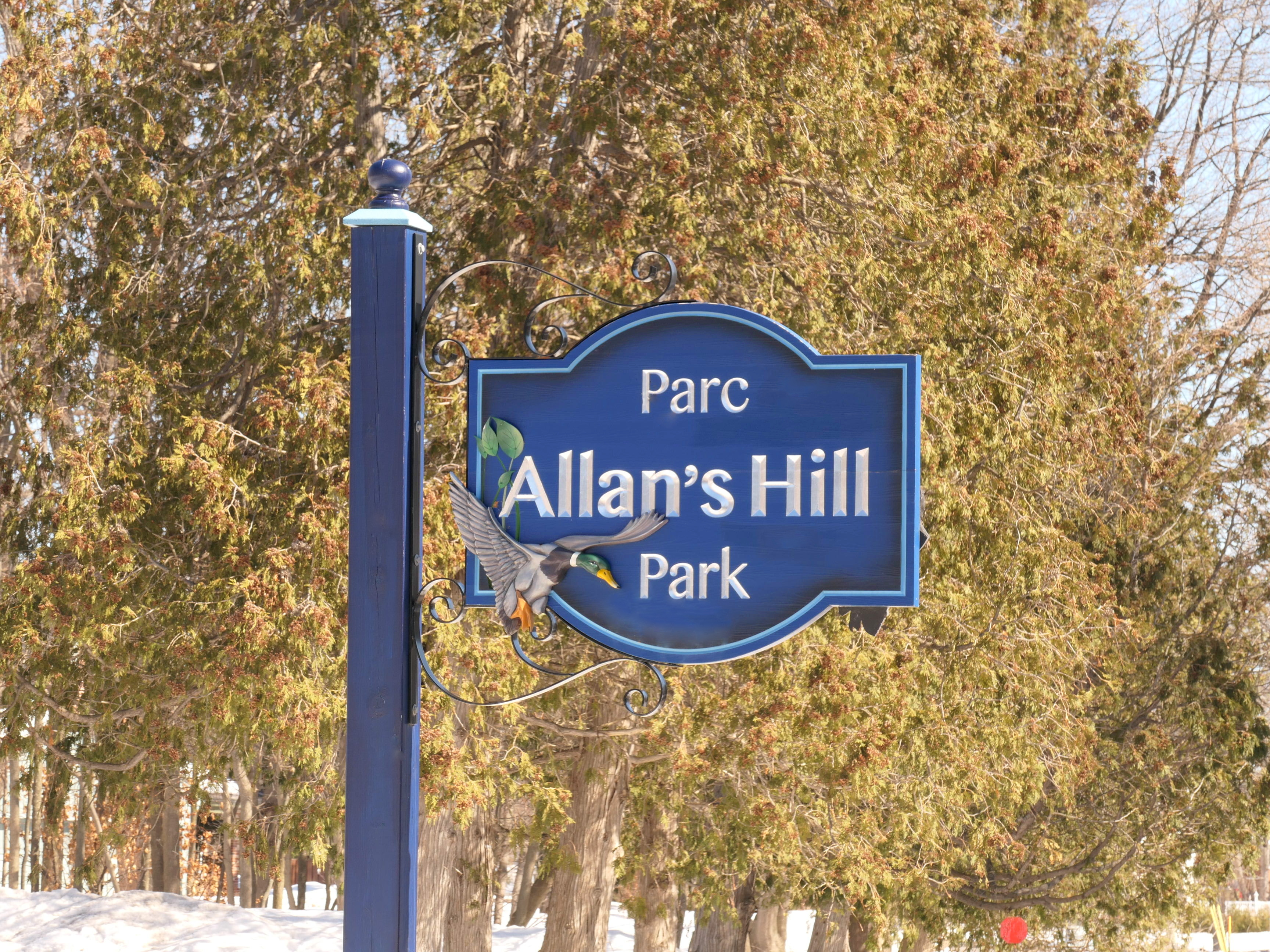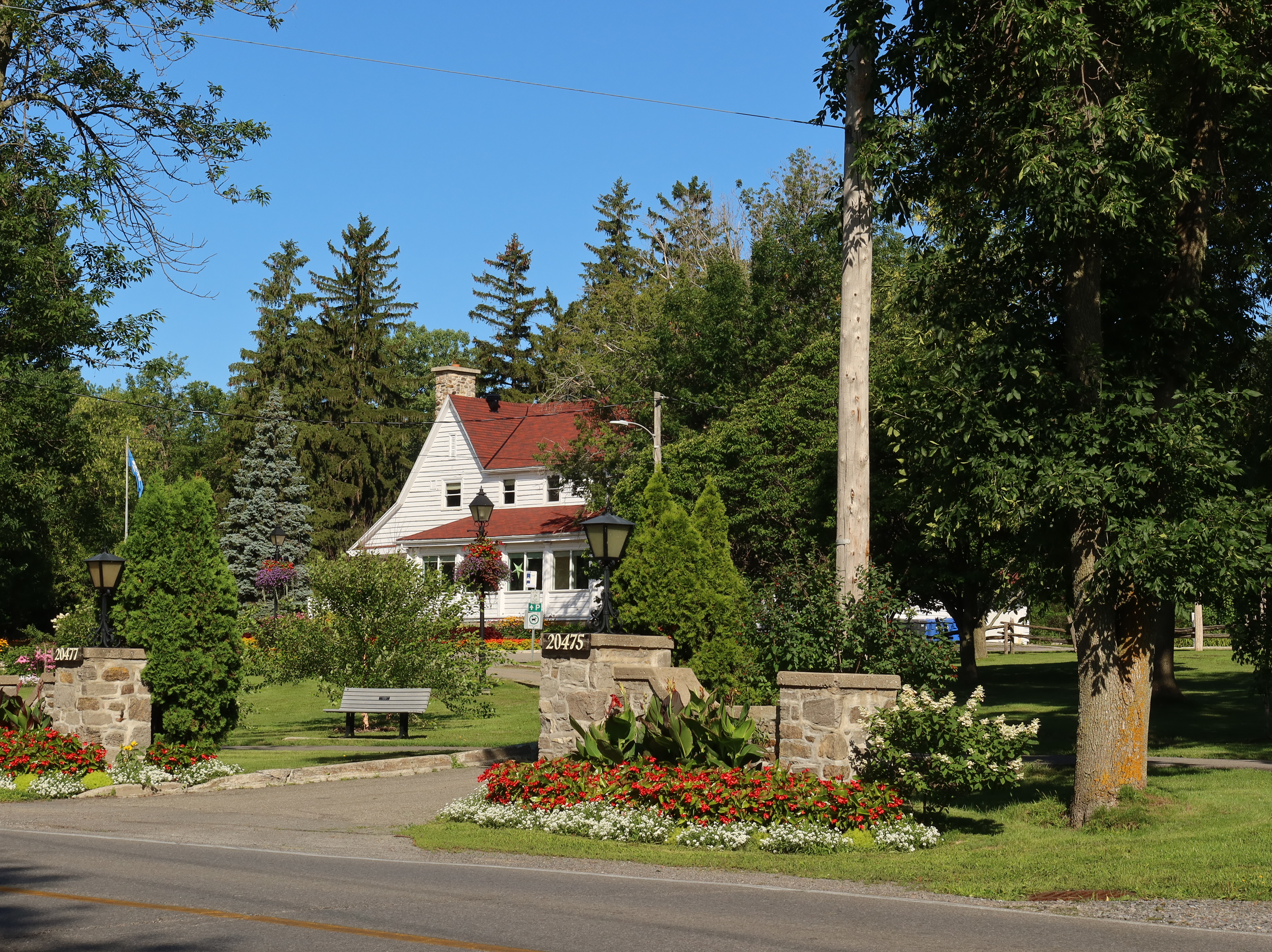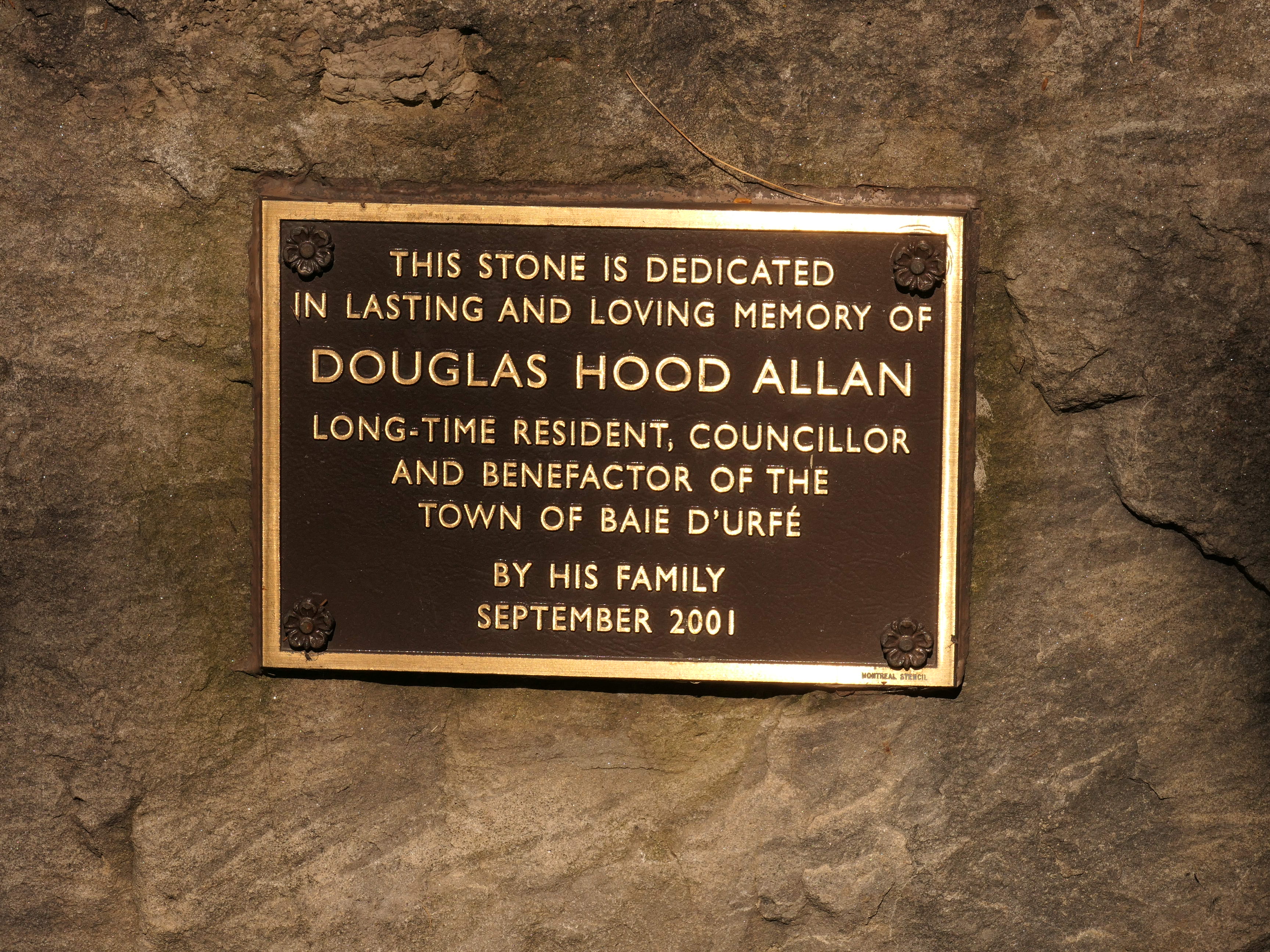 A much nicer entrance area was designed to mark Baie-D'Urfé's 100th year of incorporation. This new entrance with flowers, trees, and natural stone boulders was inaugurated on Sunday, June 19, 2011, by Mayor Maria Tutino.