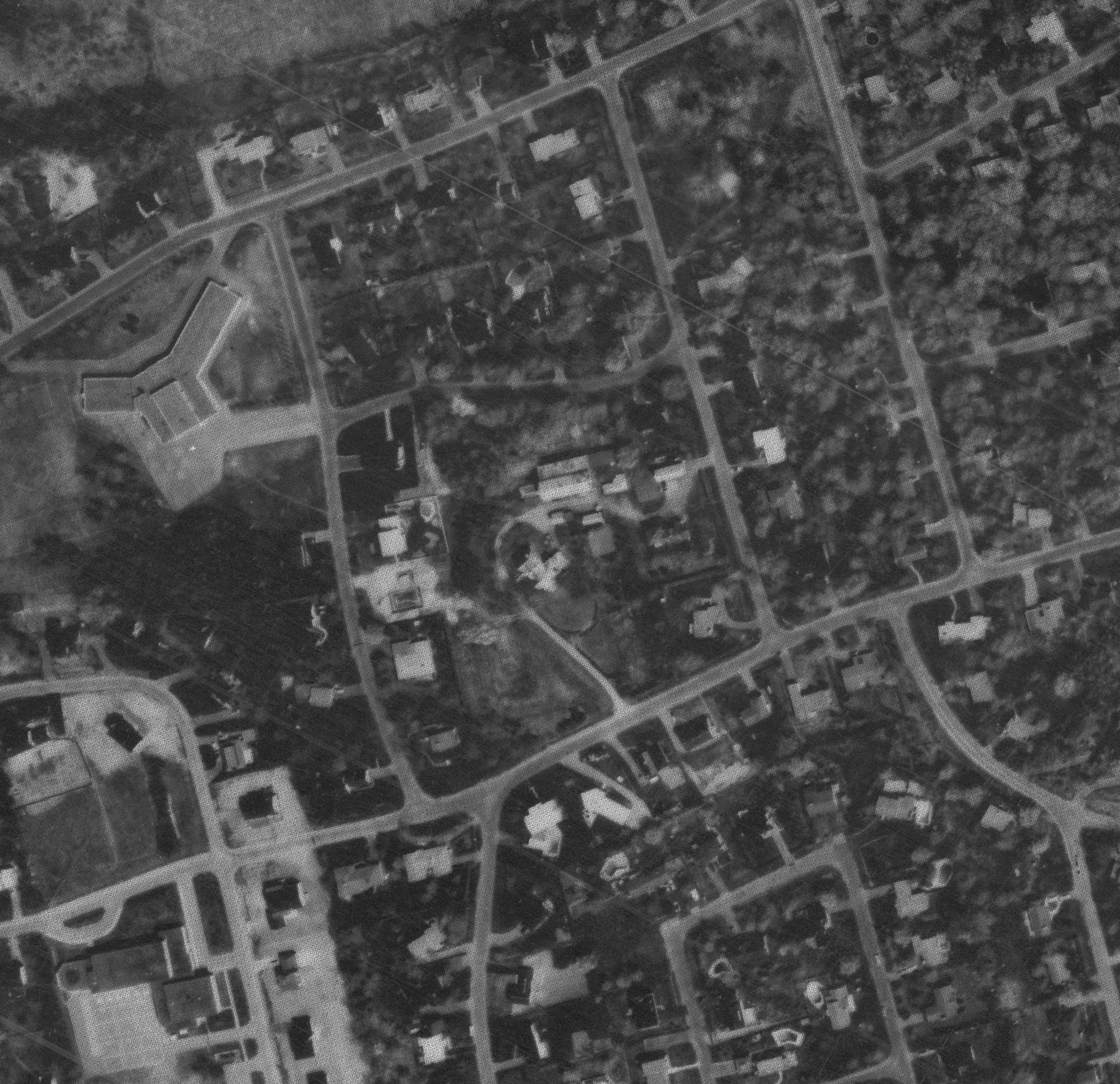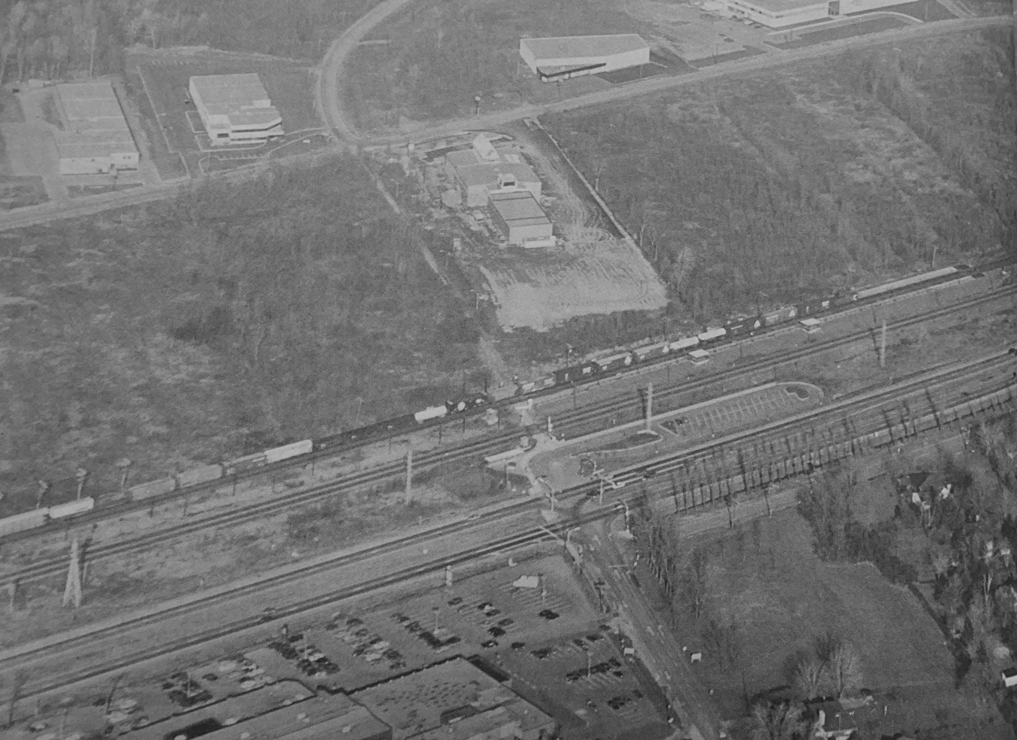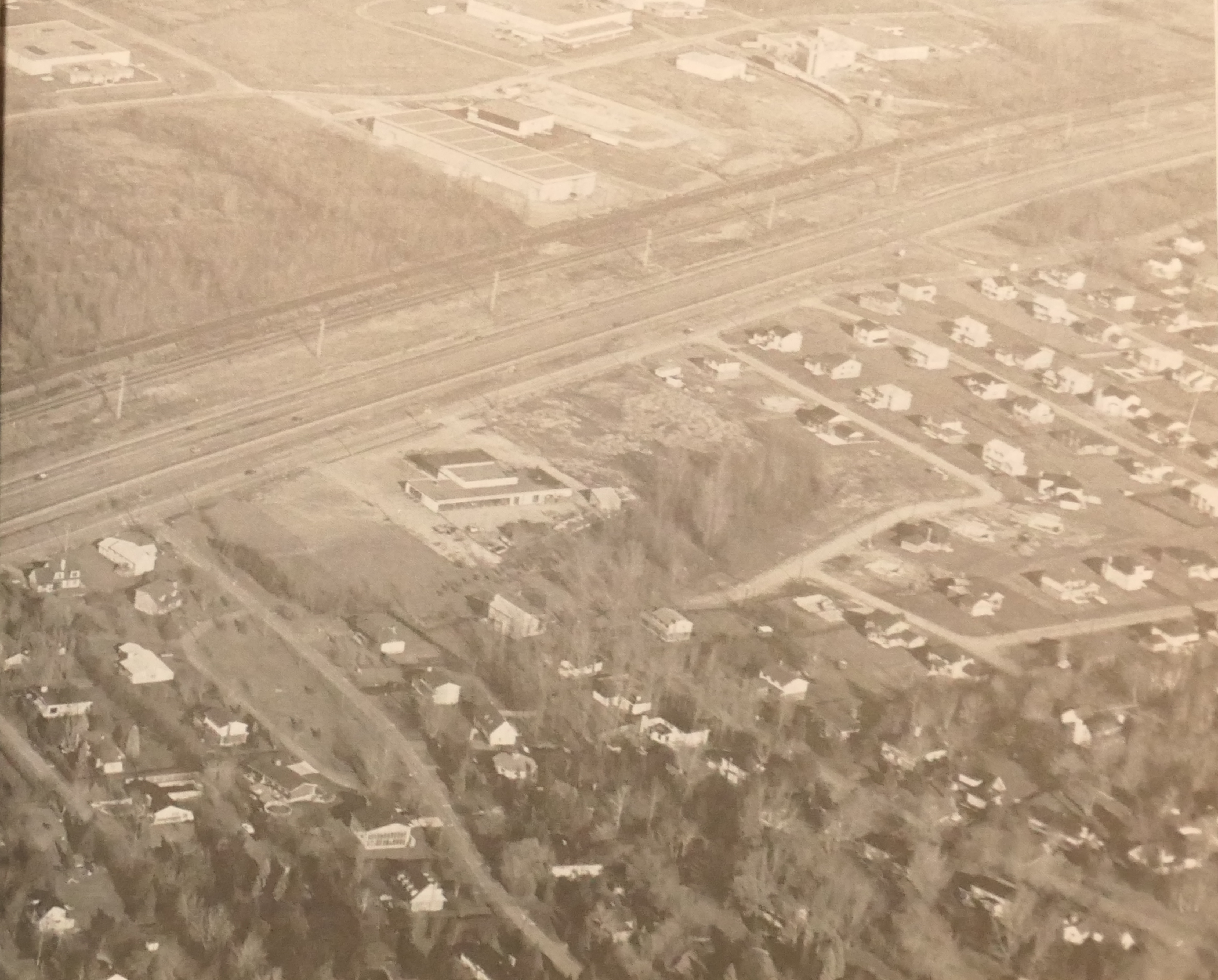 Aerial photo of the public works building, the photo is probably from 1988, source: N&V Feb. 1989