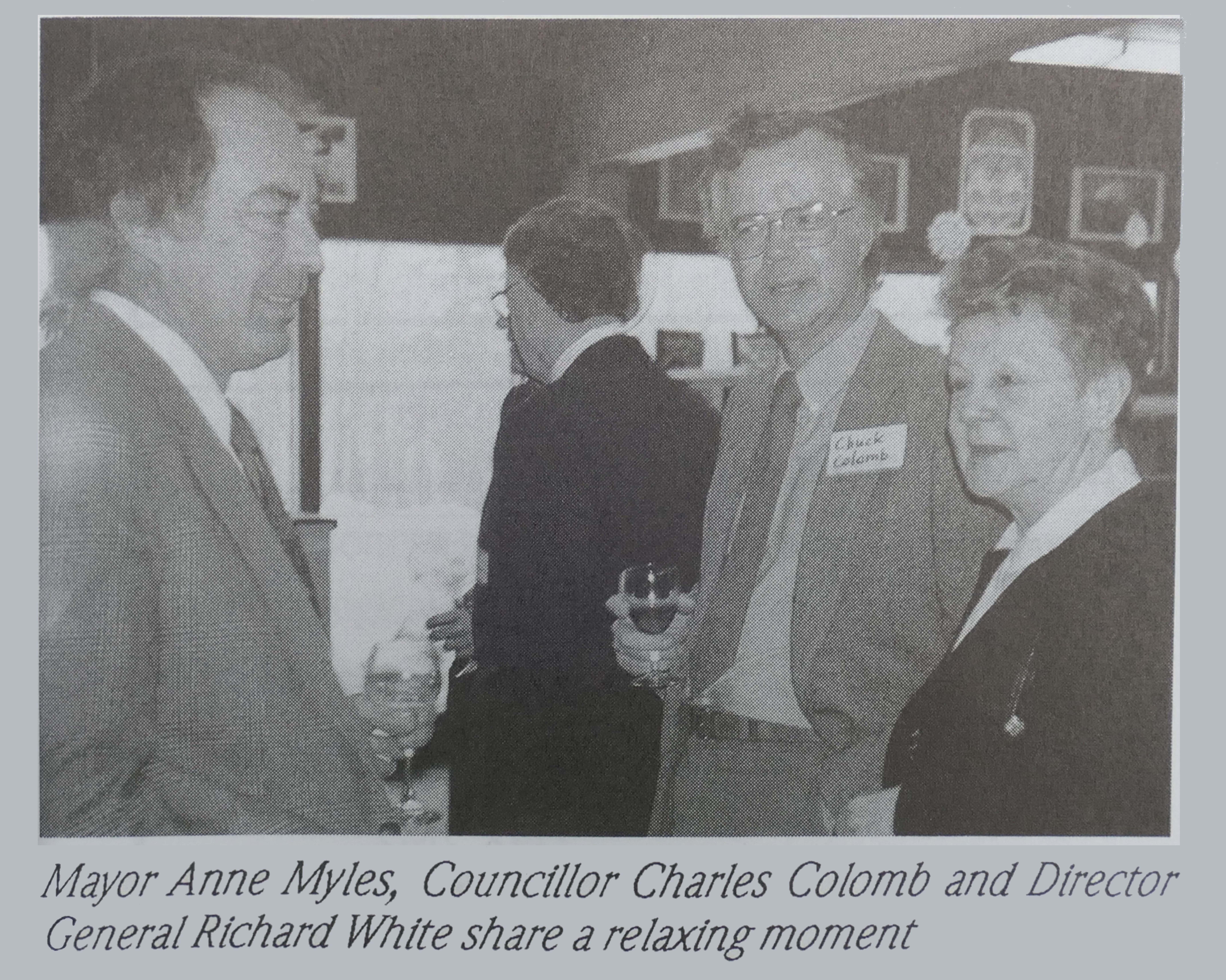 Official opening of the public works building, September 28, 1985, source: N&V Nov 1985, Richard White can be seen next to Mayor Anne Myles
