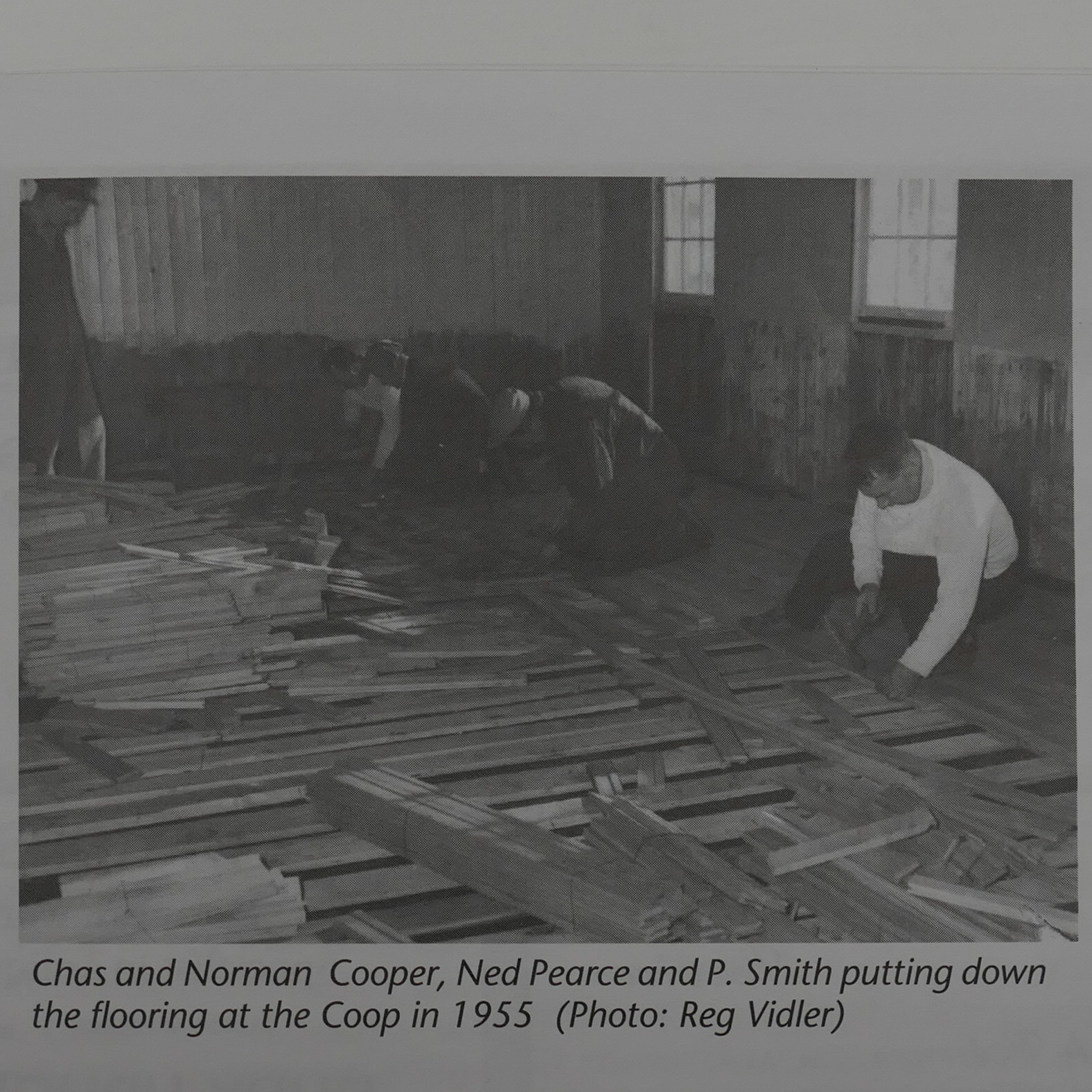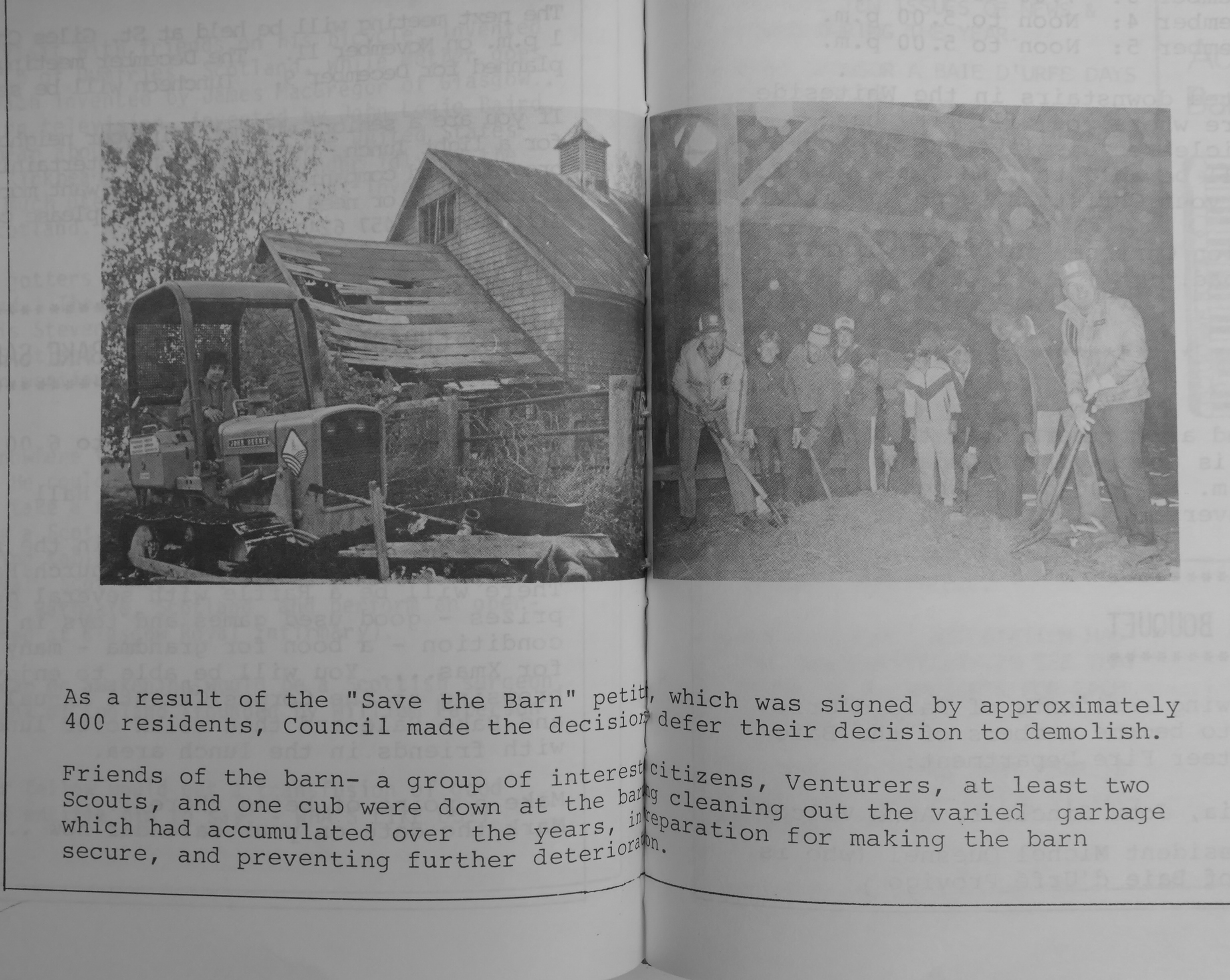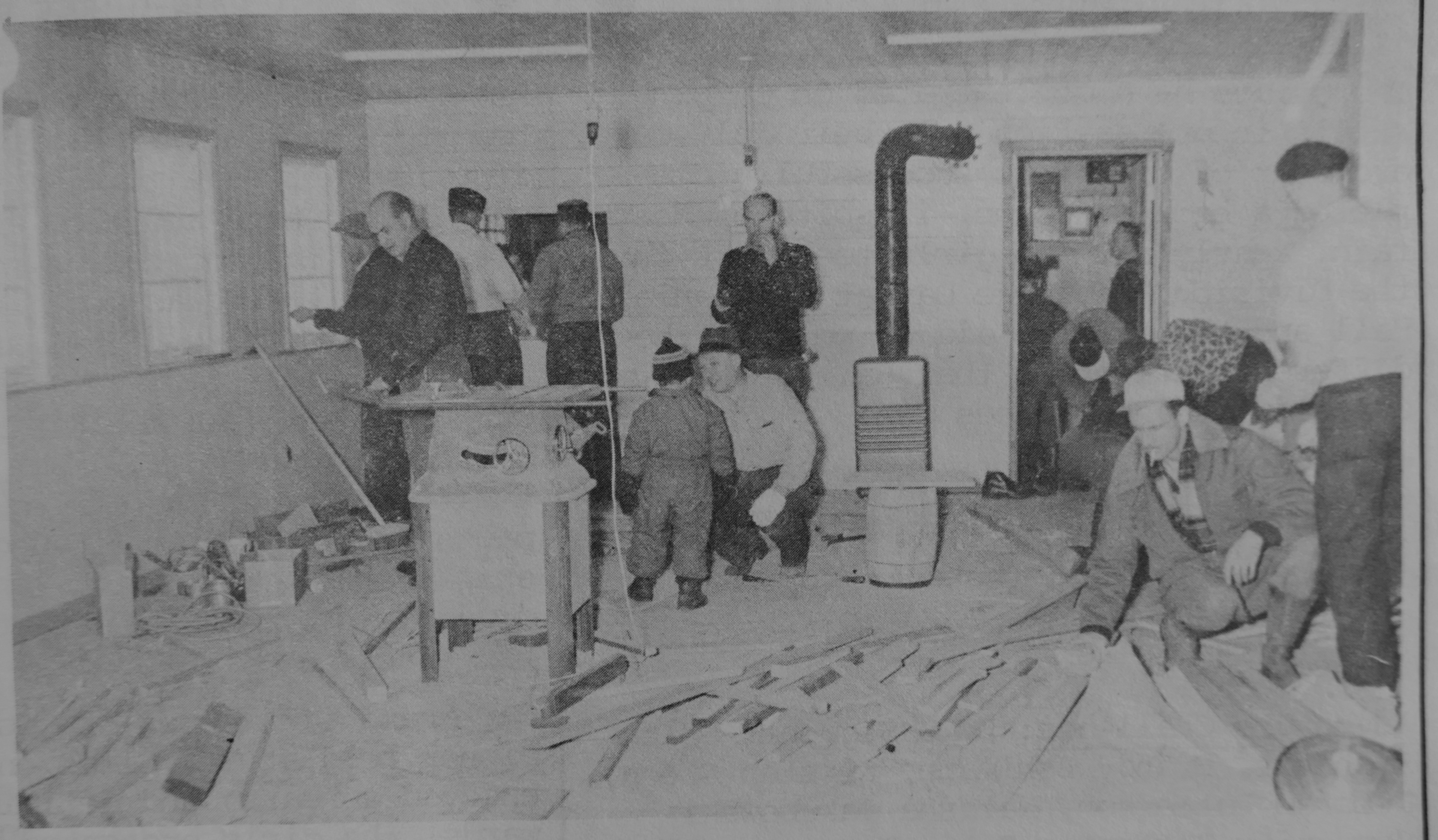 The public works department in 1985, they were responisible for the transformation of the car dealership into a Municipal Services building, photo: N&V Nov 1985, left to right: Alec Lasalle, George Campbell, Gordie Charette, Marcel Faidit, Donald White