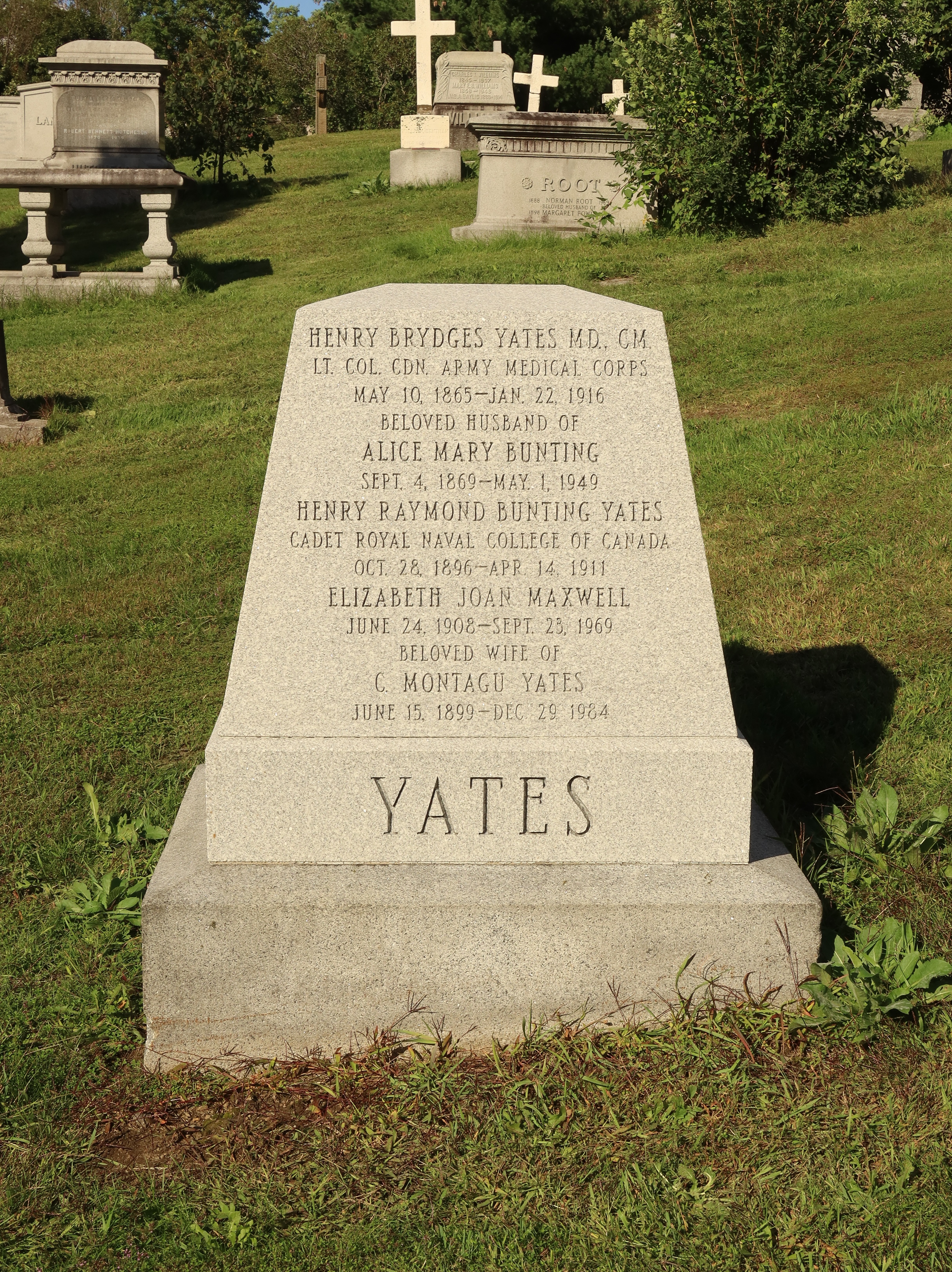 Yates family grave at the Mount Royal Cemetery, Pine Hill section