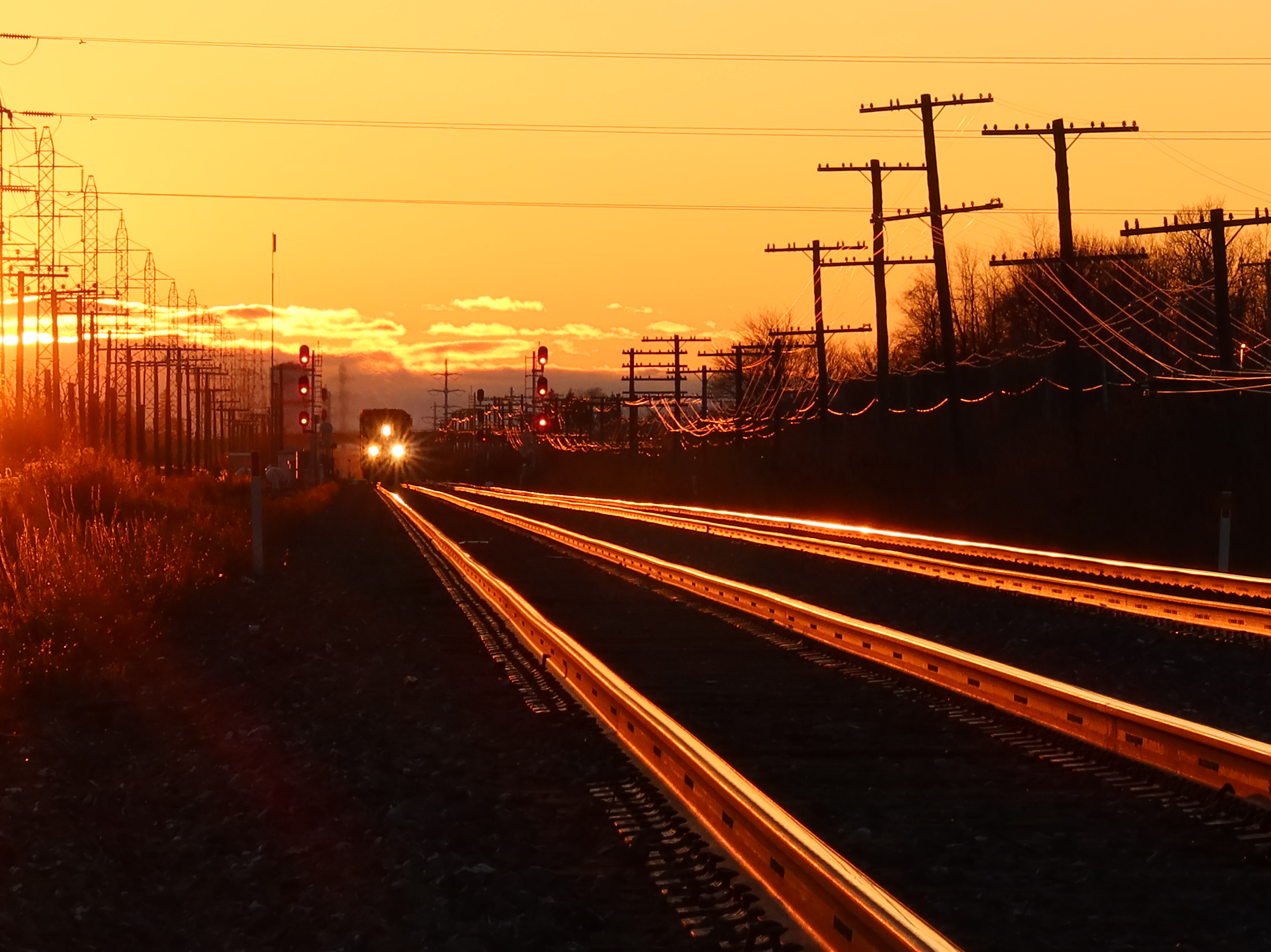 Sunset at the GT rail tracks, now CN, in Baie-D'Urfe, photo: Nov. 2020