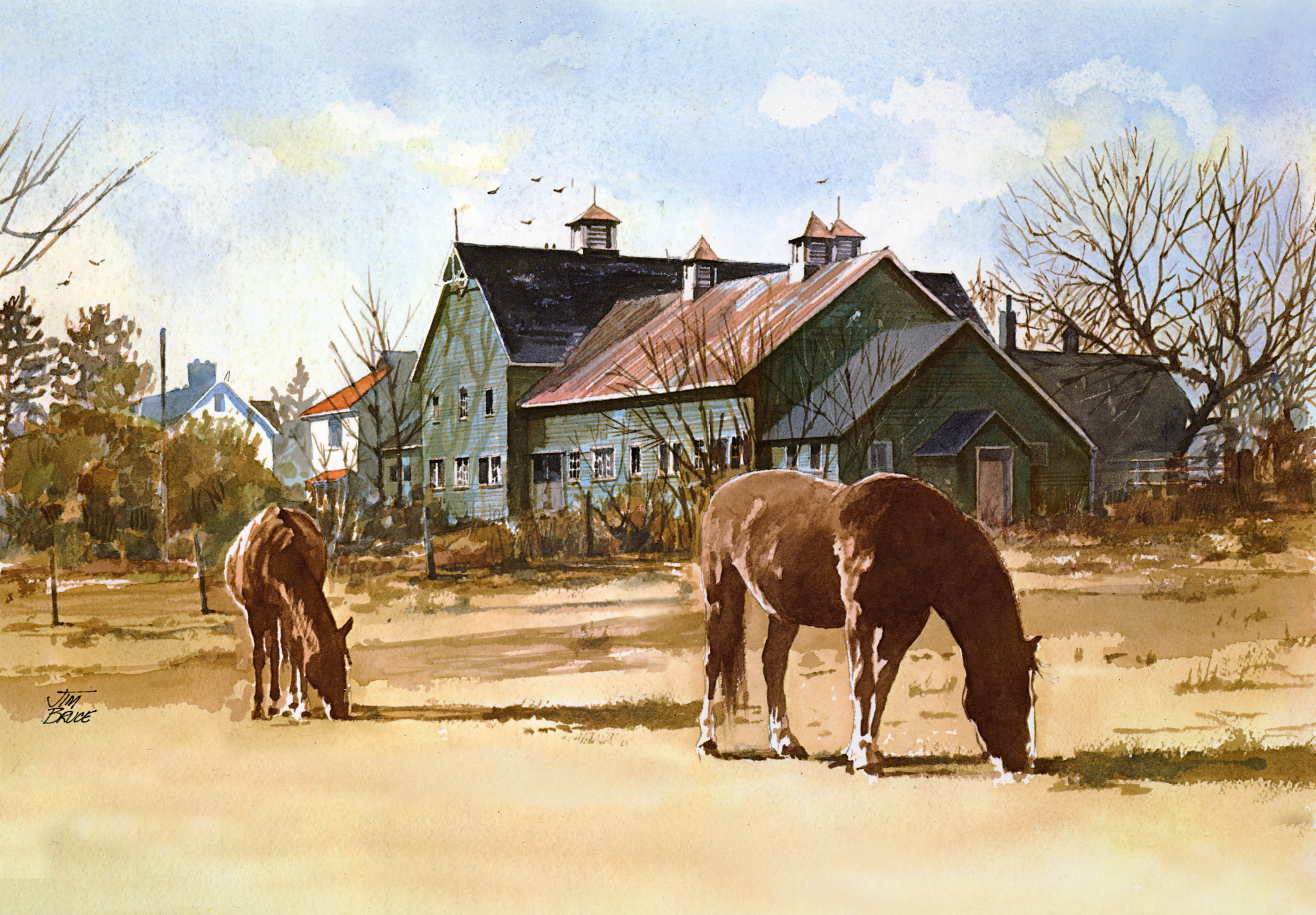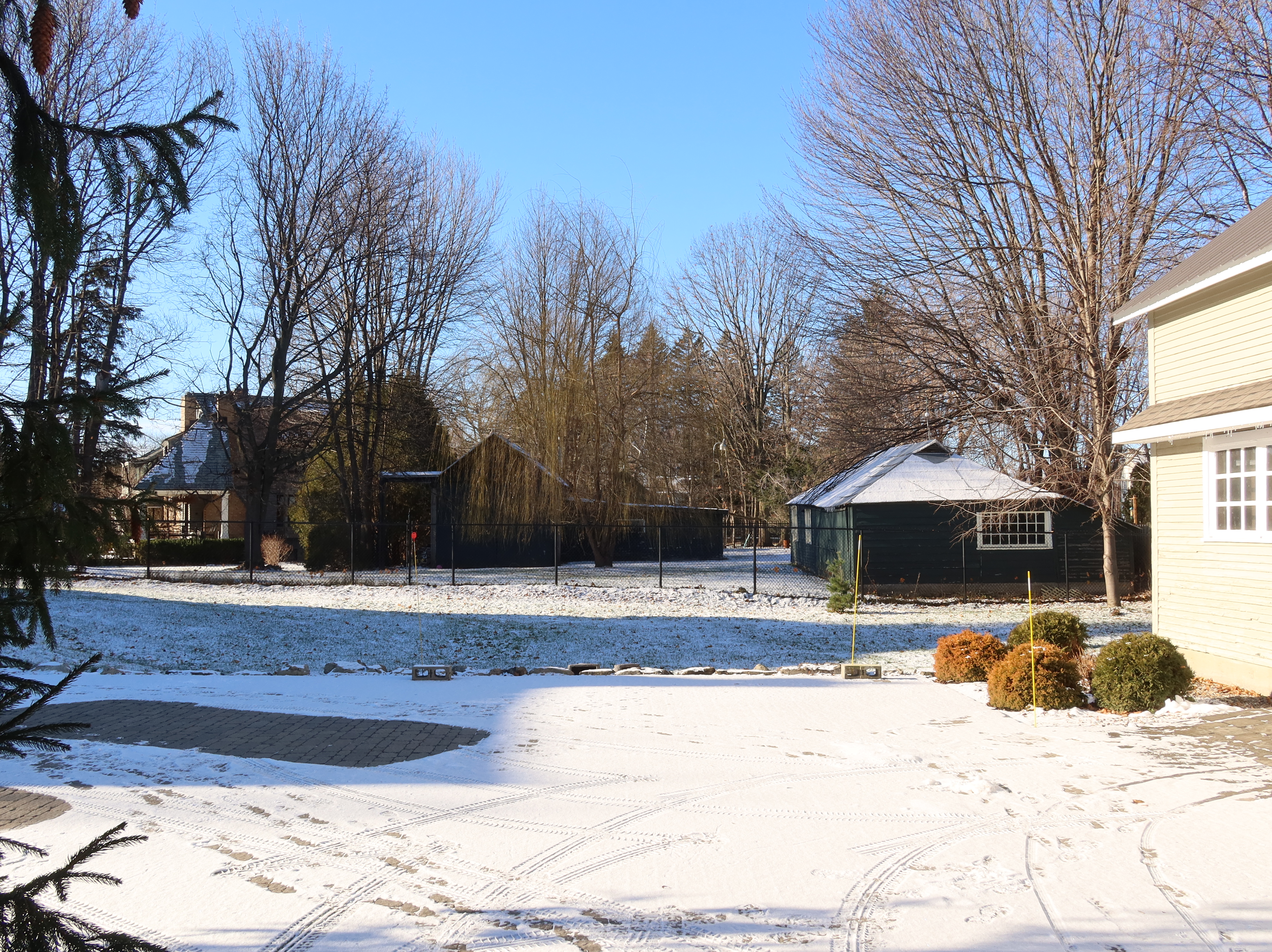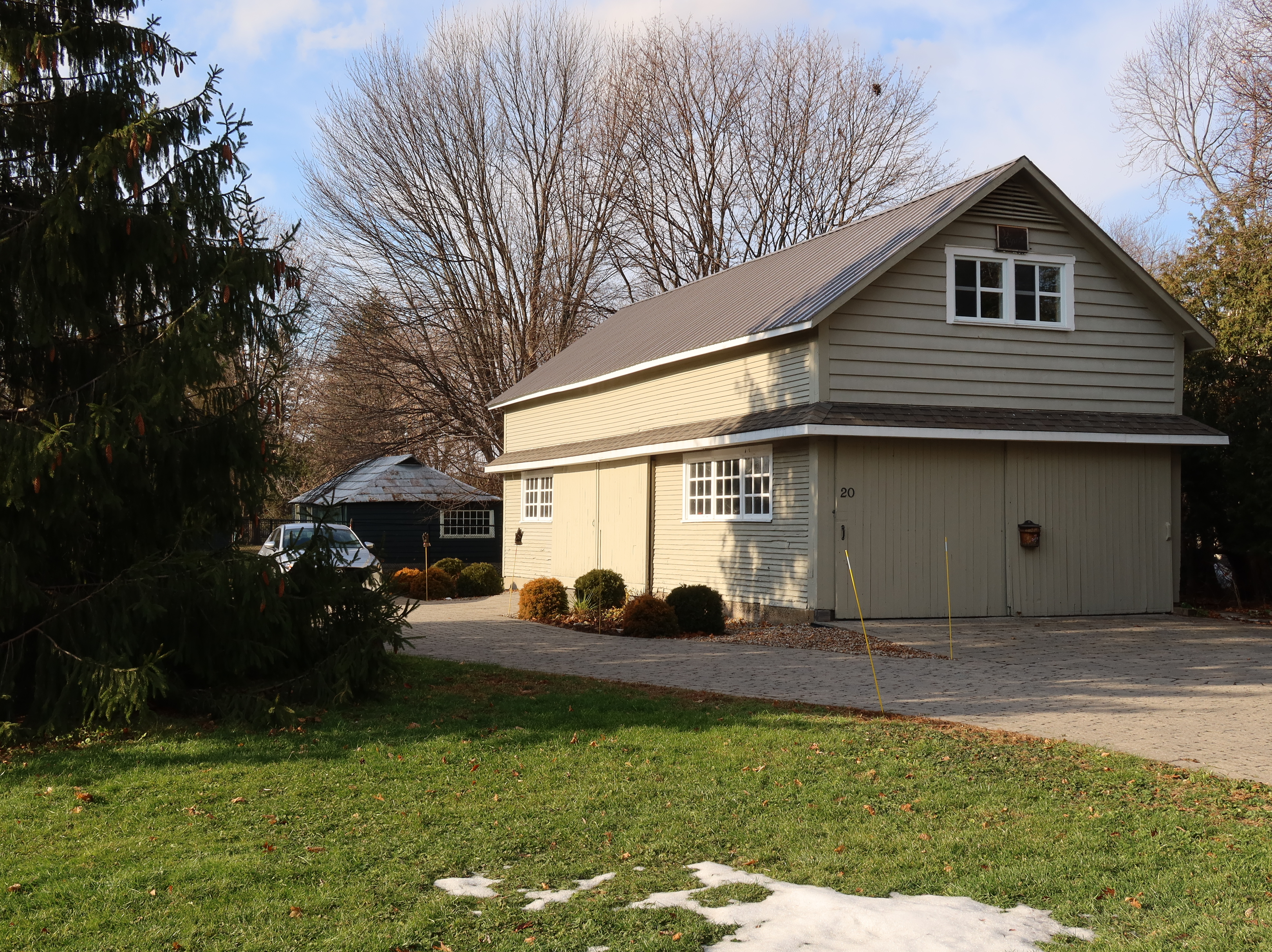 Horse barn with Edward Maxwell shed in the back, photo: Dec. 2020