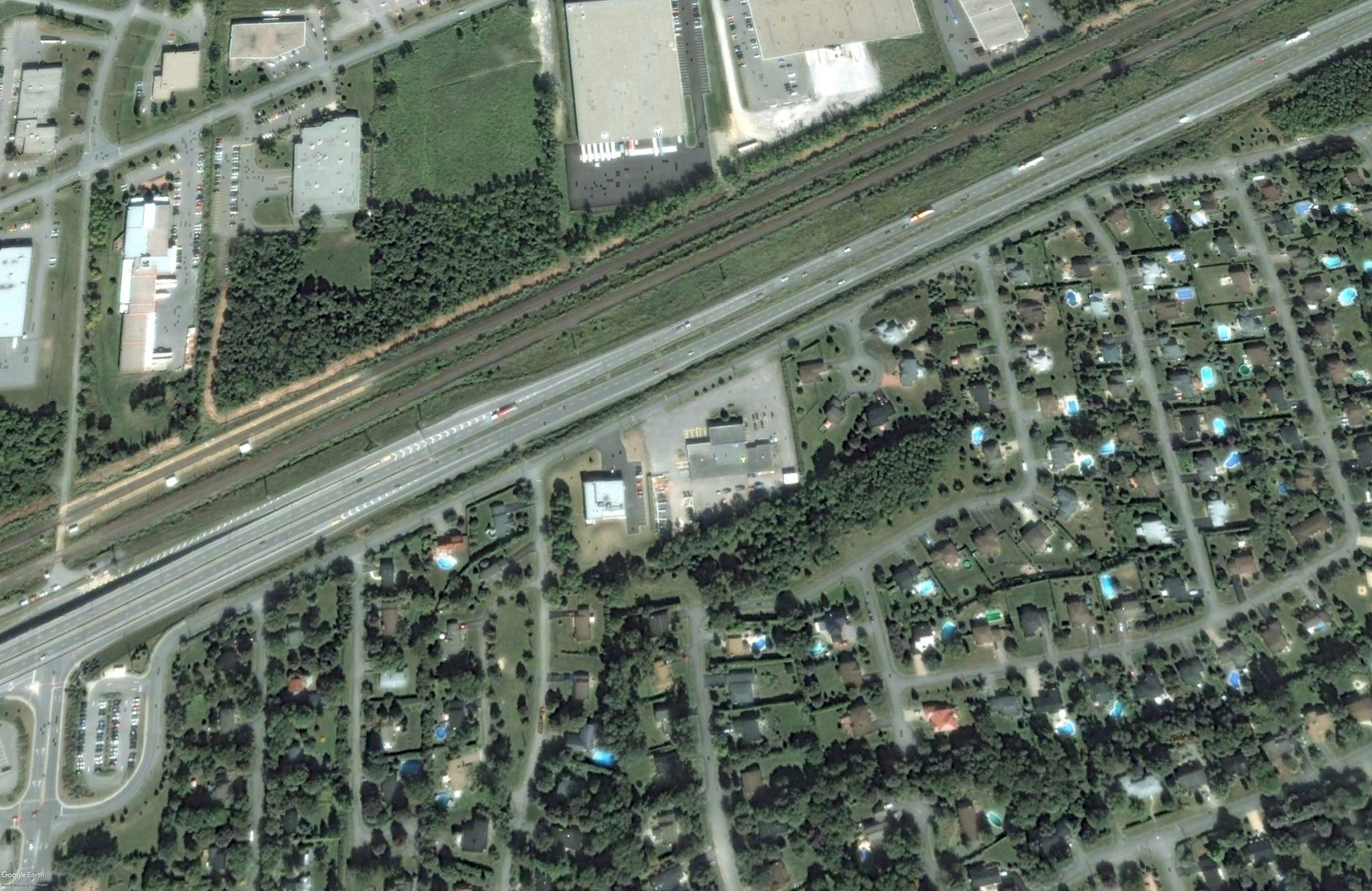 View from Gray Park towards the train tracks and the highway, photo from google-earth in 2019
