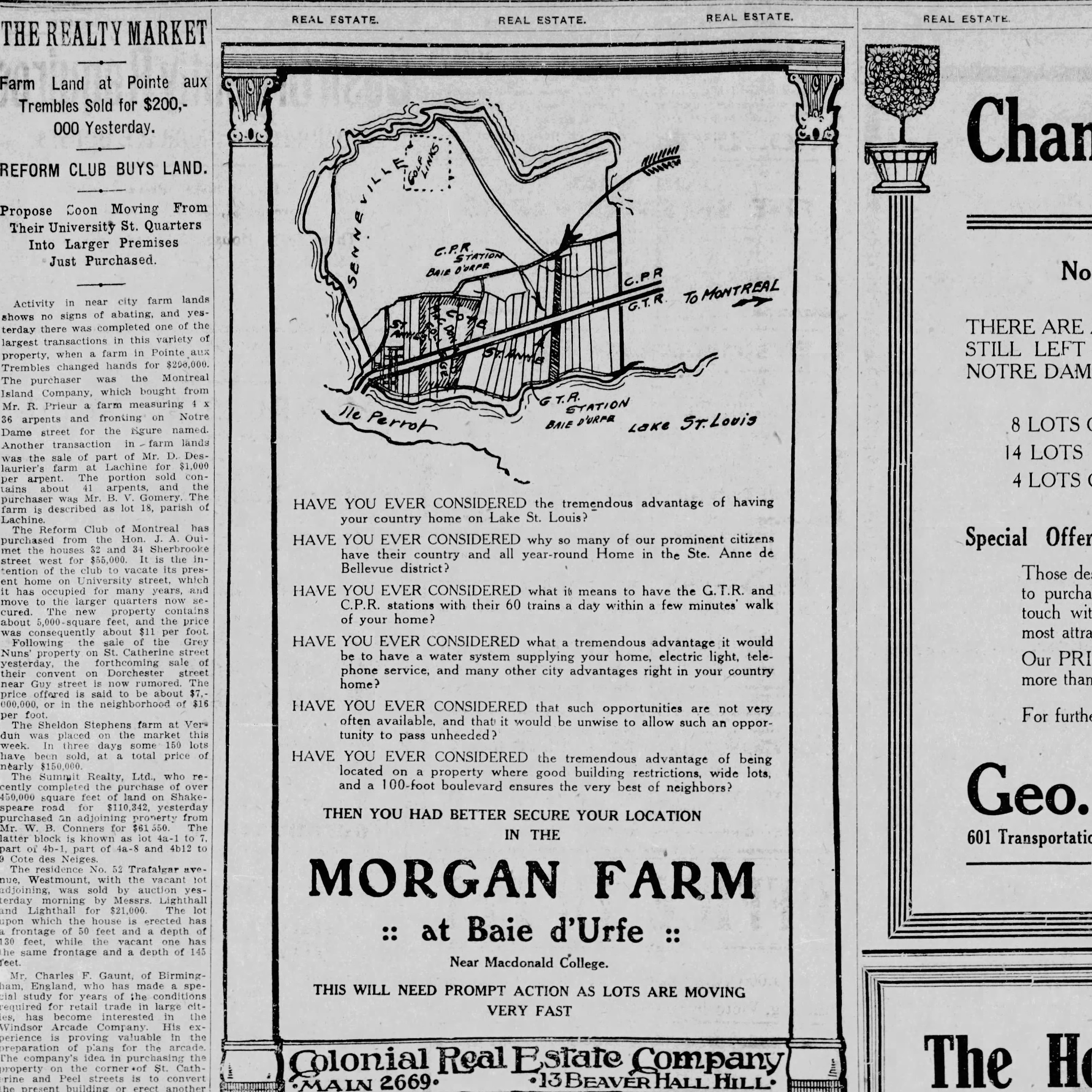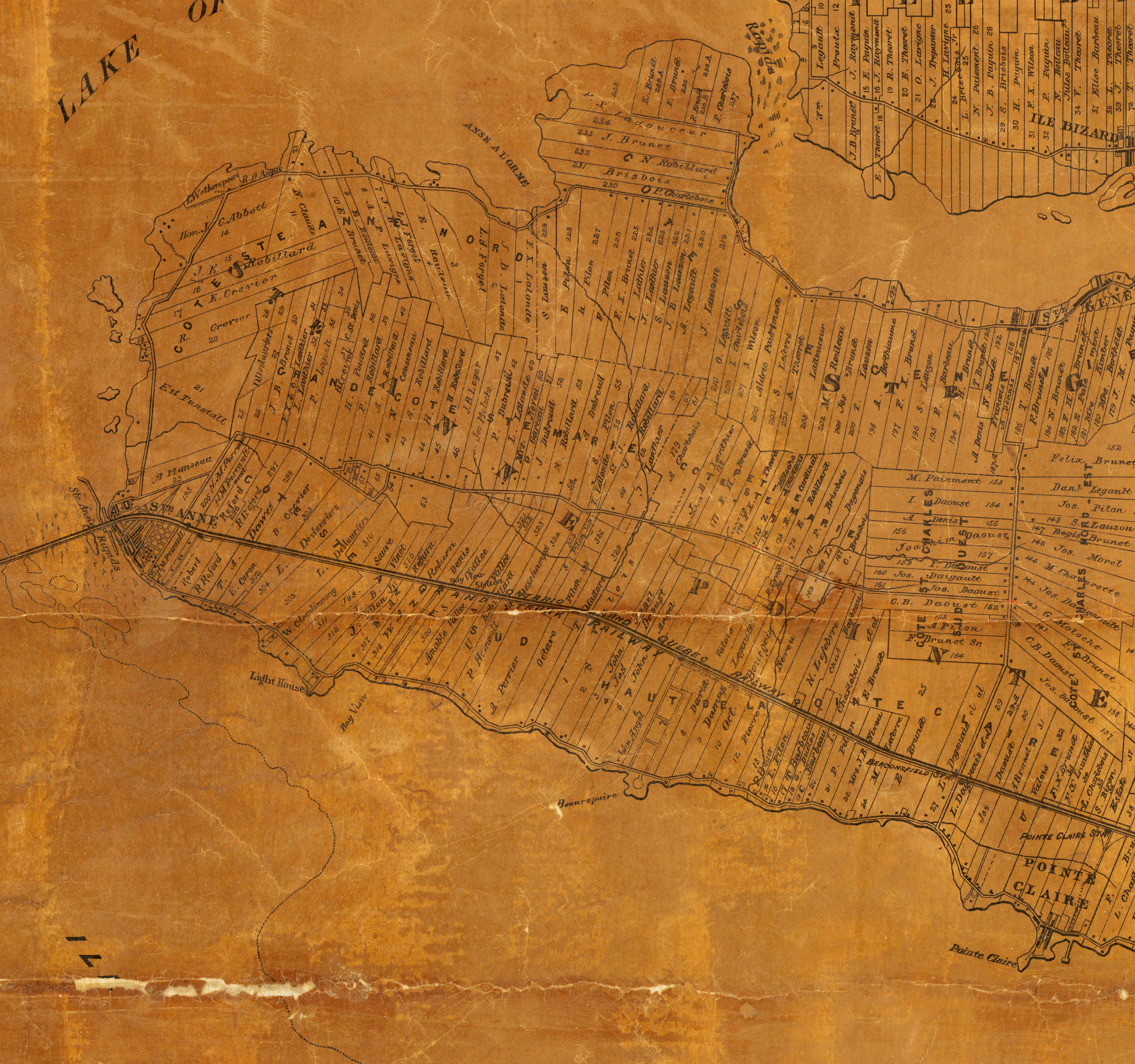 The main road was Lakeshore and it ended in St-Anne with no bridge. This changed in 1852/1853 when the Grand Trunk Railway Company of Canada built railway tracks from Montreal to Toronto. All farms were suddenly cut in half. These tracks determined the path of future transportation routes and indeed the very layout of the town.