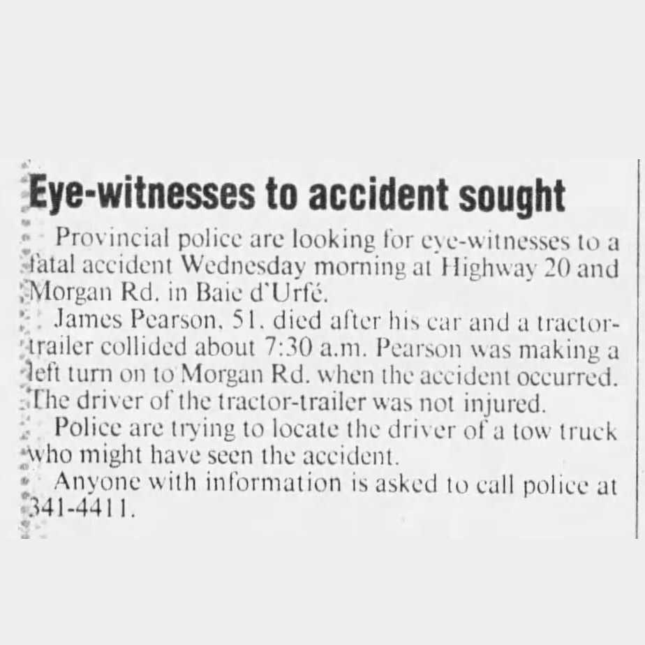 Eye withness to deadly acciden sought, The Gazette, Mar. 10, 1995