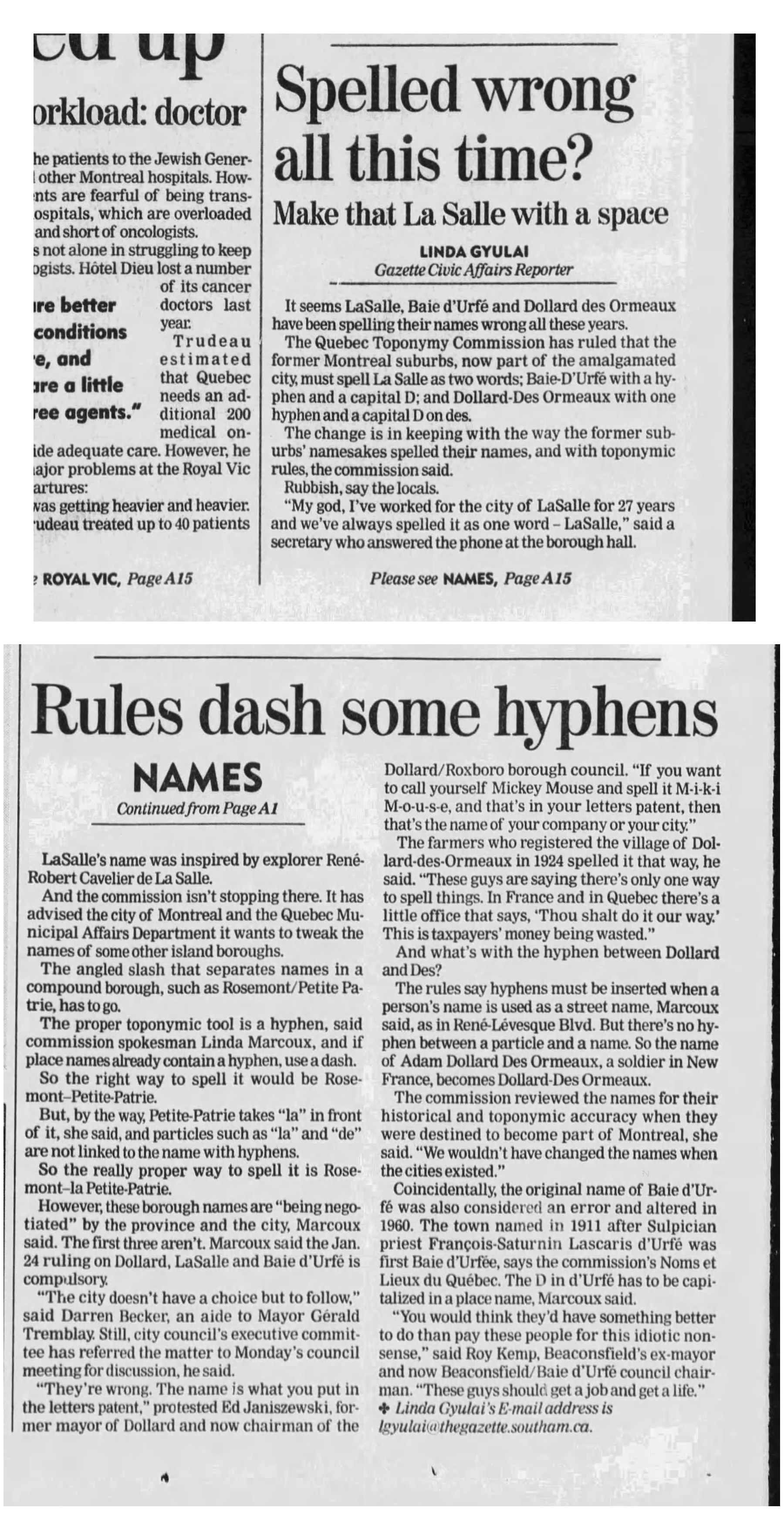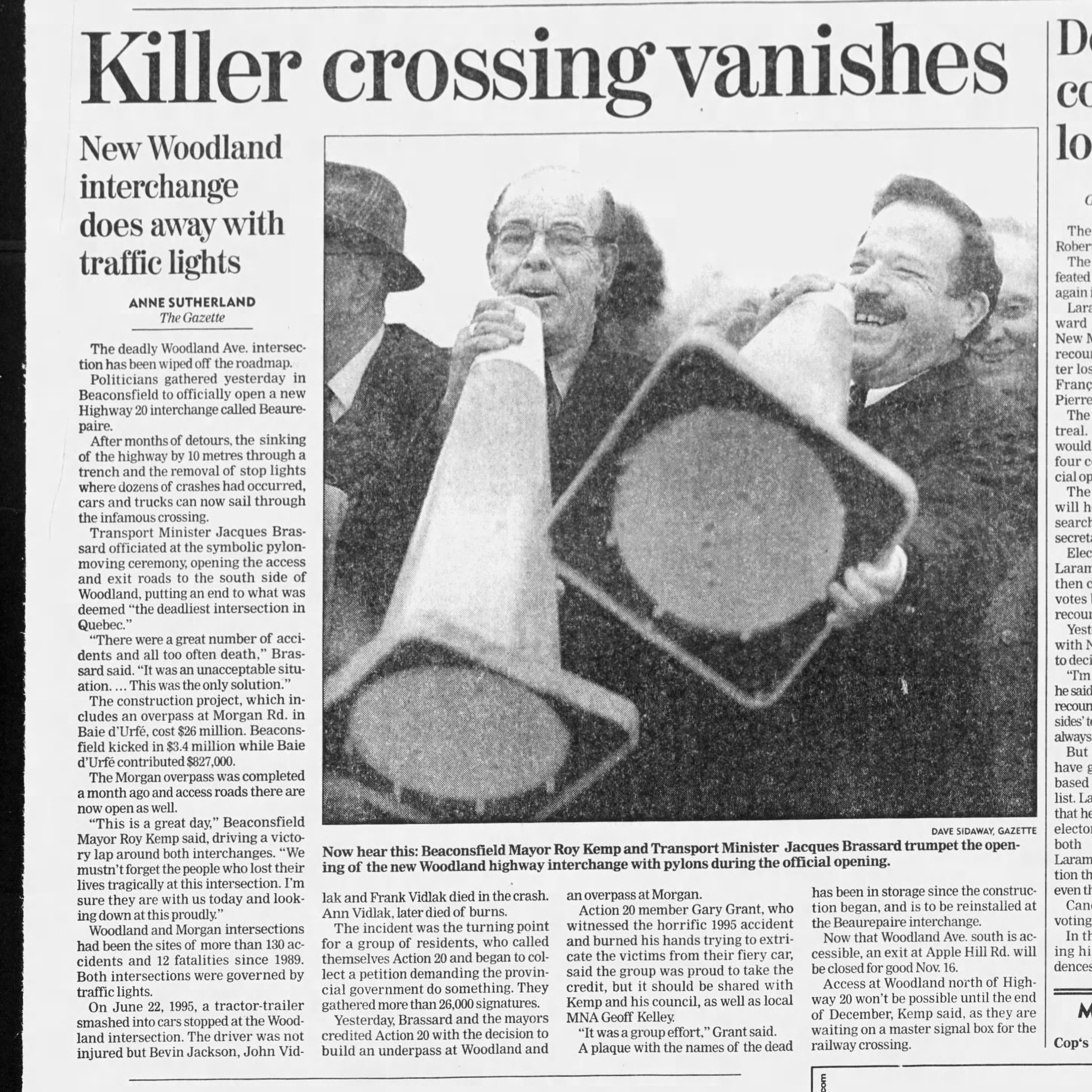 Killer crossing vanishes, The Gazette, Nov. 13, 1998