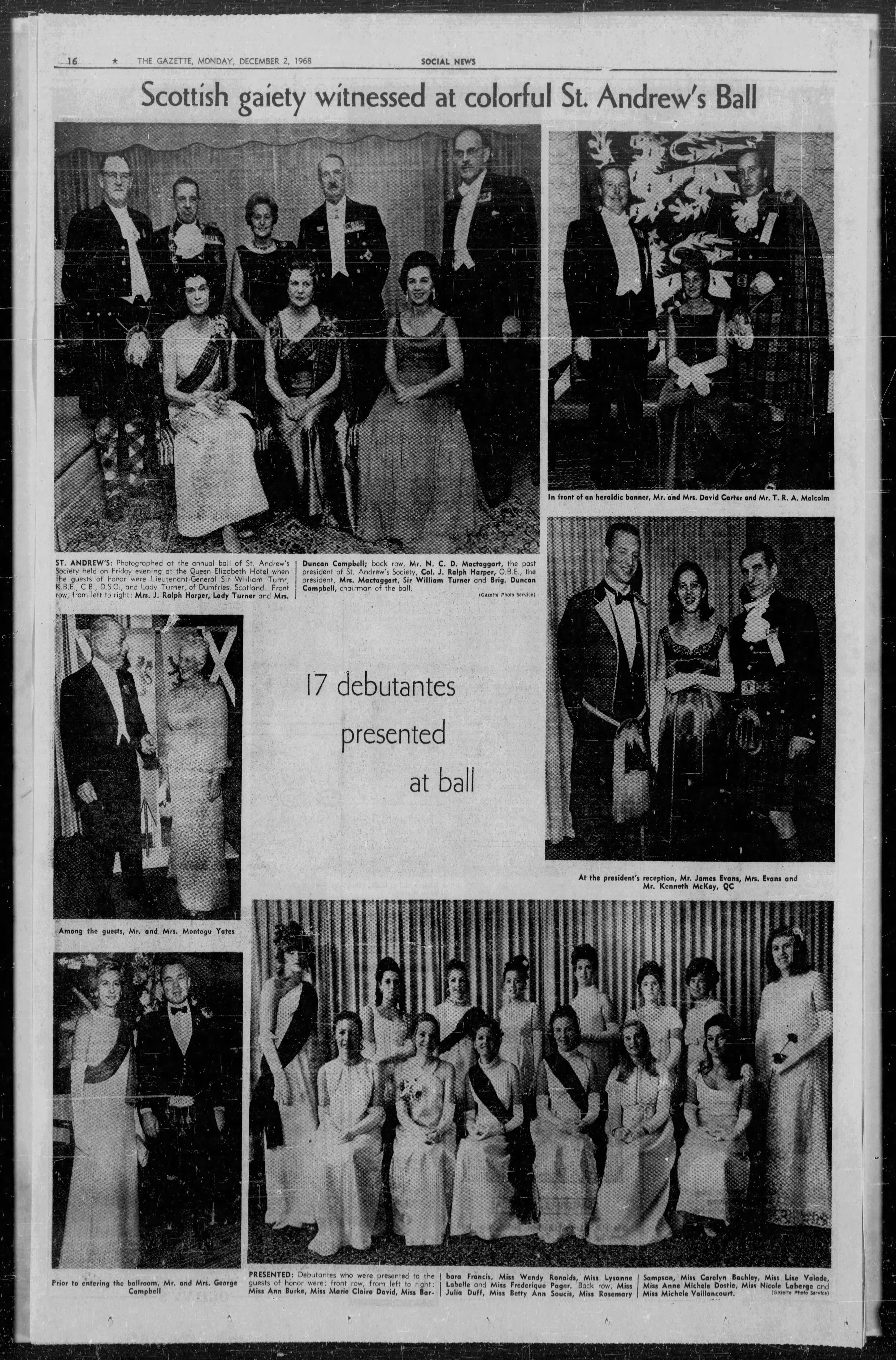 Christopher Montagu Yates and Elizabeth Joan Maxwell at the St-Andrew's Ball, the Gazette Dec. 2, 1968