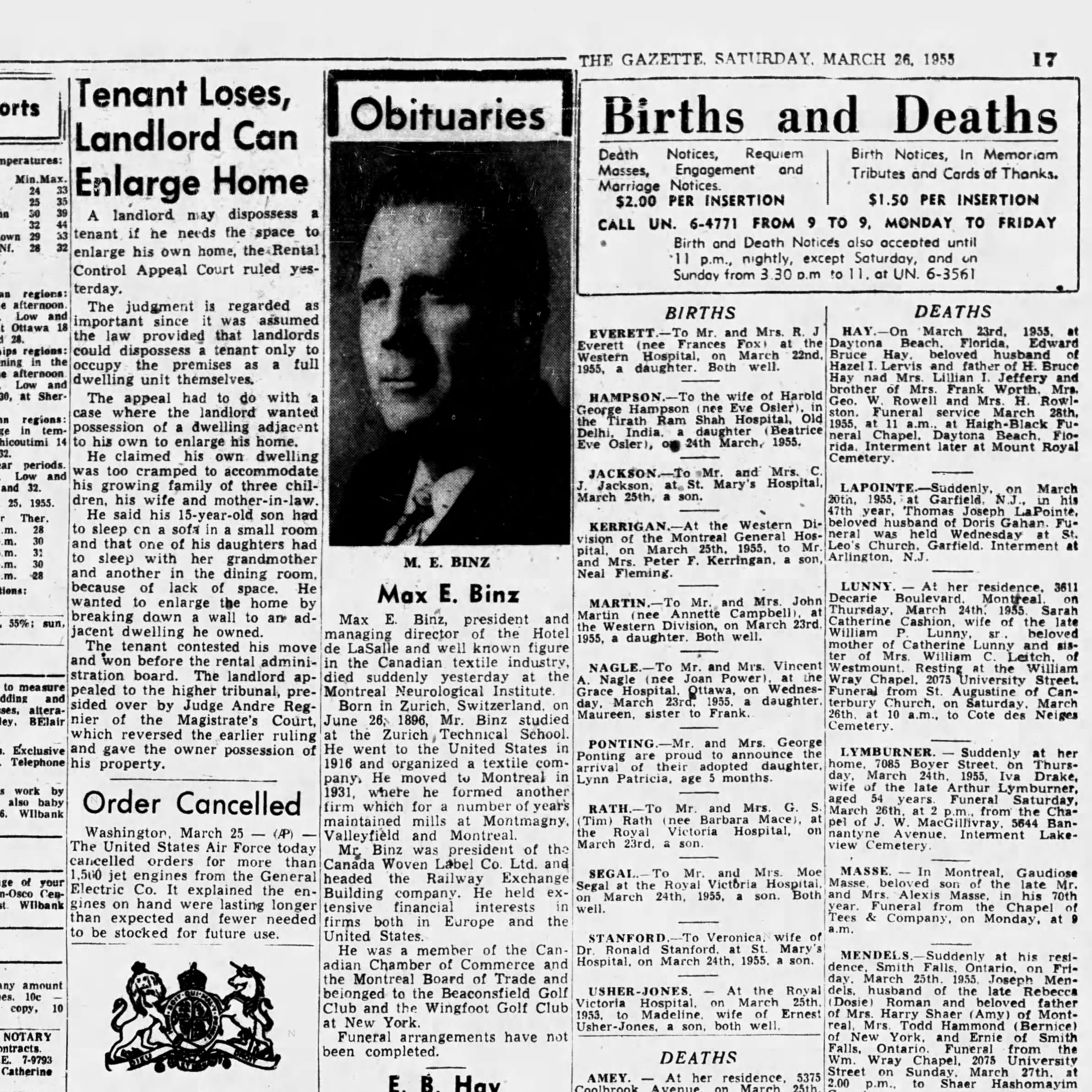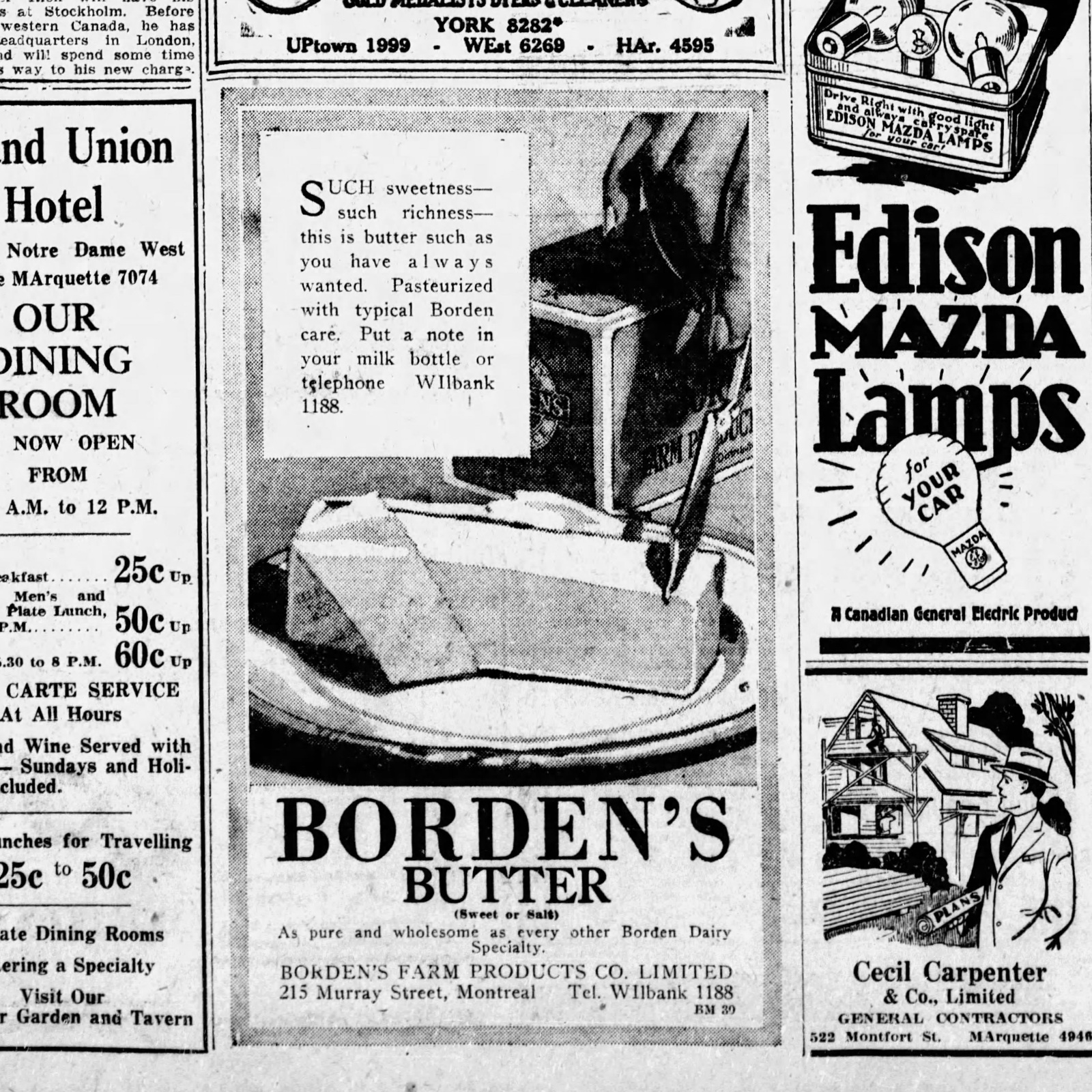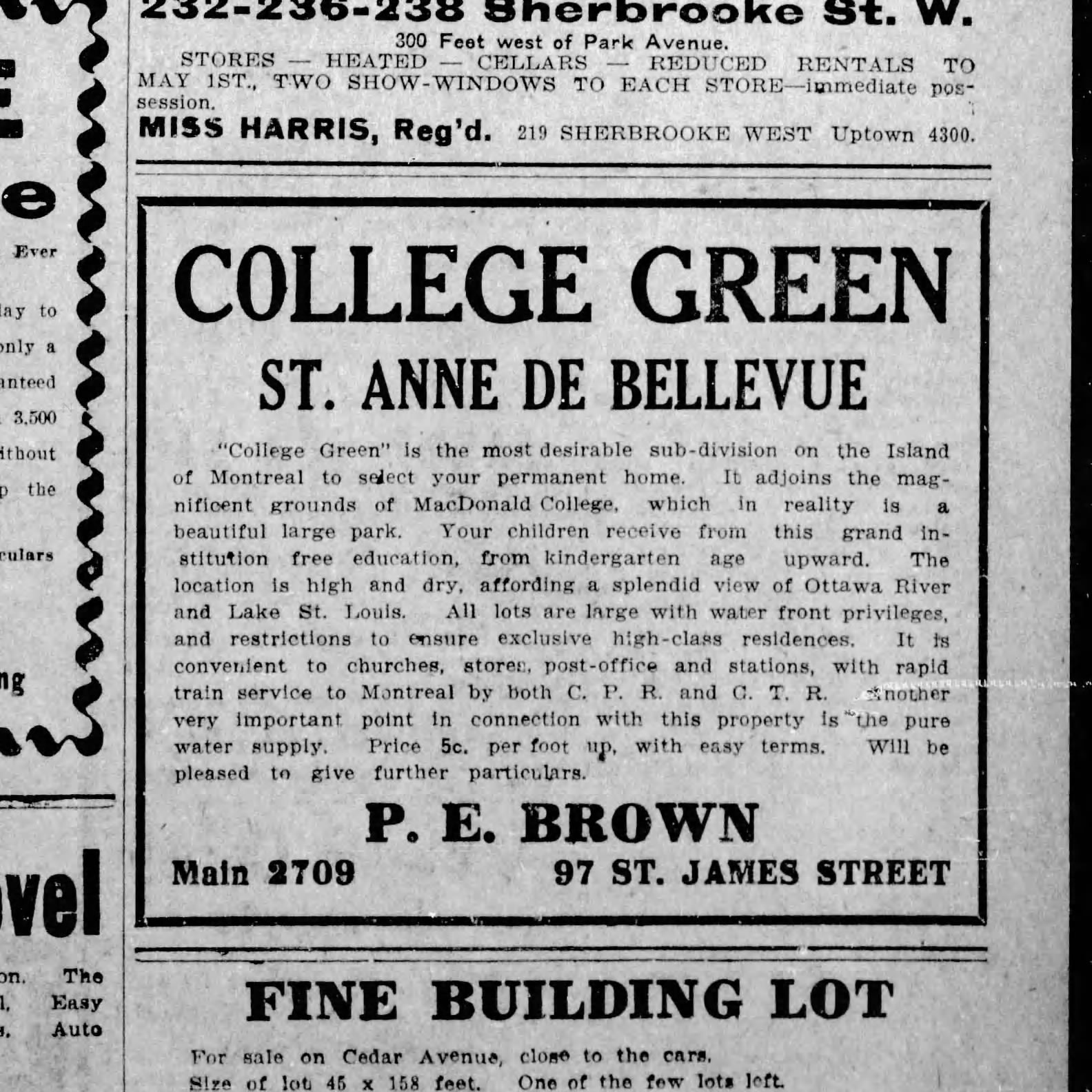 Borden on Murray Street in Montreal, source: Montreal Gazette, July 17, 1929