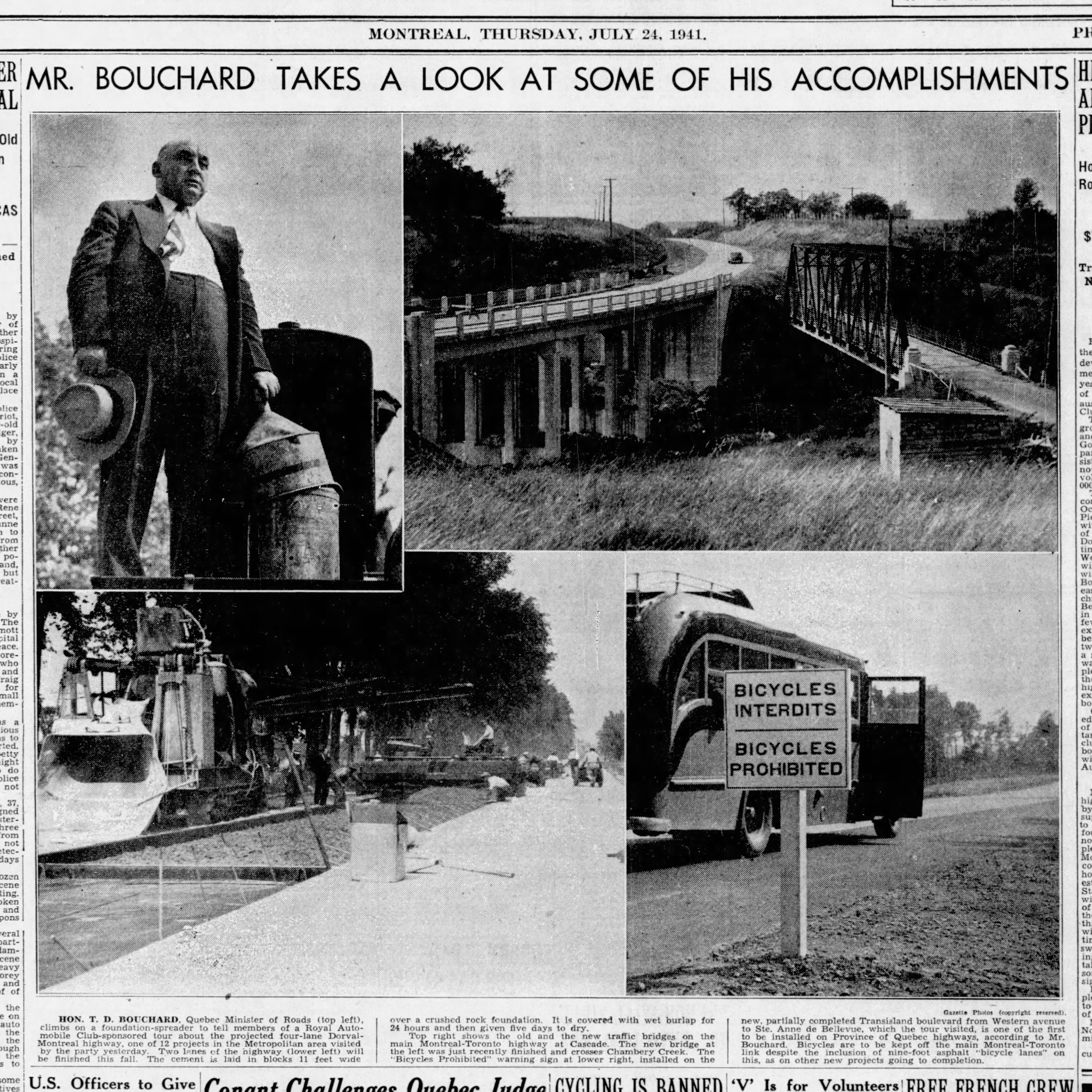 Boulevard becomes highway, bicycles prohibited, The Gazette, July 24, 1941