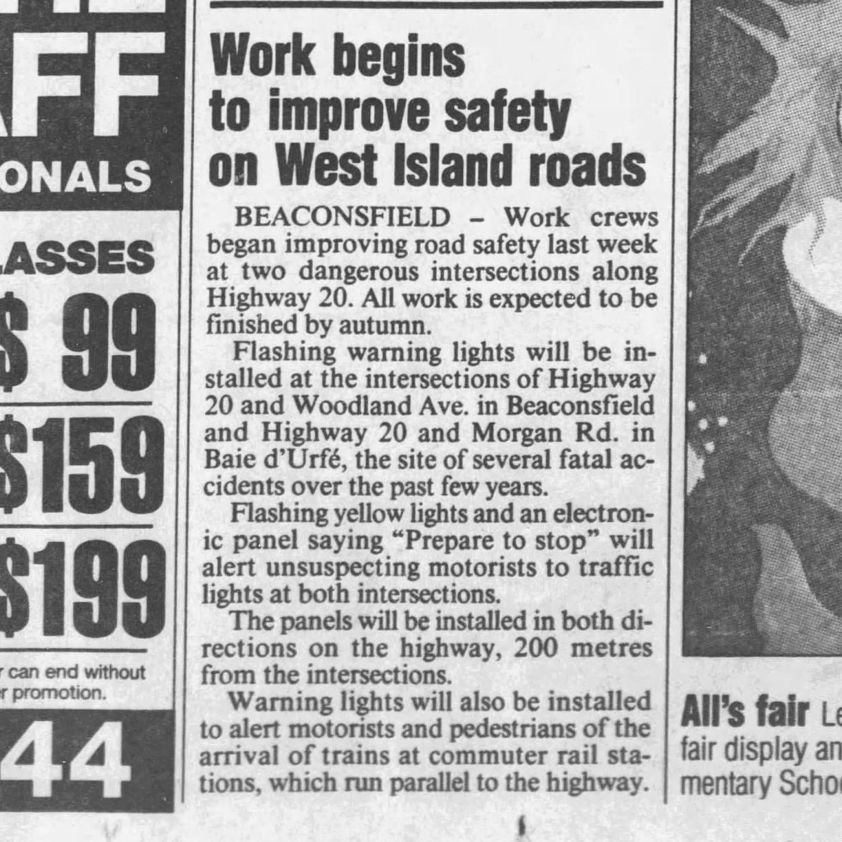 Warning lights installed, The Gazette, June 2, 1994
