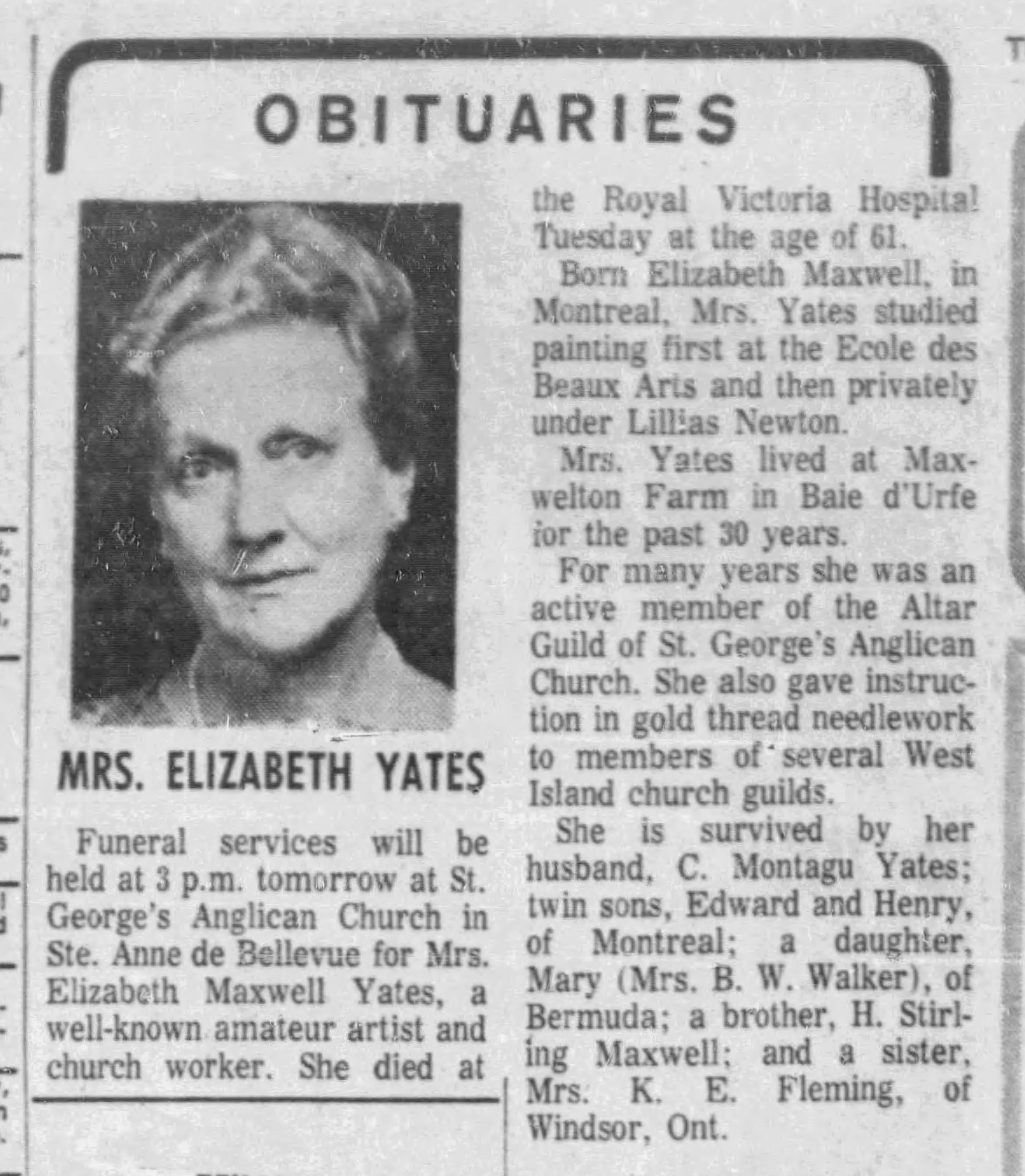 Obituaries, Elizabeth Yates, the Gazette, Sep. 25, 1969