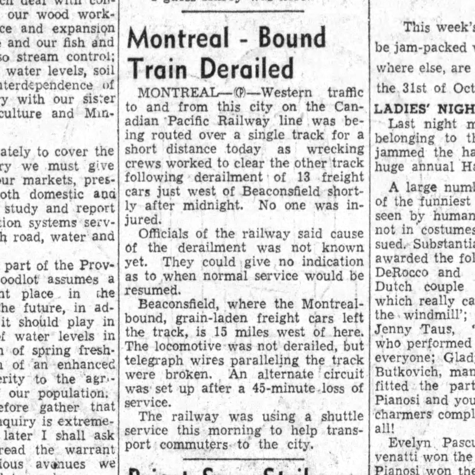 Train derailment, report by the Sault Daily Star, Oct 28, 1946