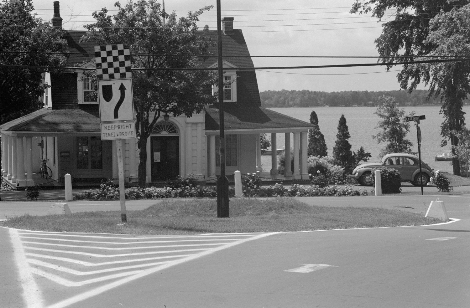 The new highway was however at the western end of the island still more of a wide road then a full highway. It was quite similar to what you see today on HWY 20 in Ile Perrot but initially without traffic lights. From Morgan Road you could simply turn left or right onto this highway. A second entrance was near Apple Hill. The crossing was straight down from Gray Crescent except that Gray did not exist yet. As traffic increased during the 1960s dedicated turning lanes and traffic lights were introduced.