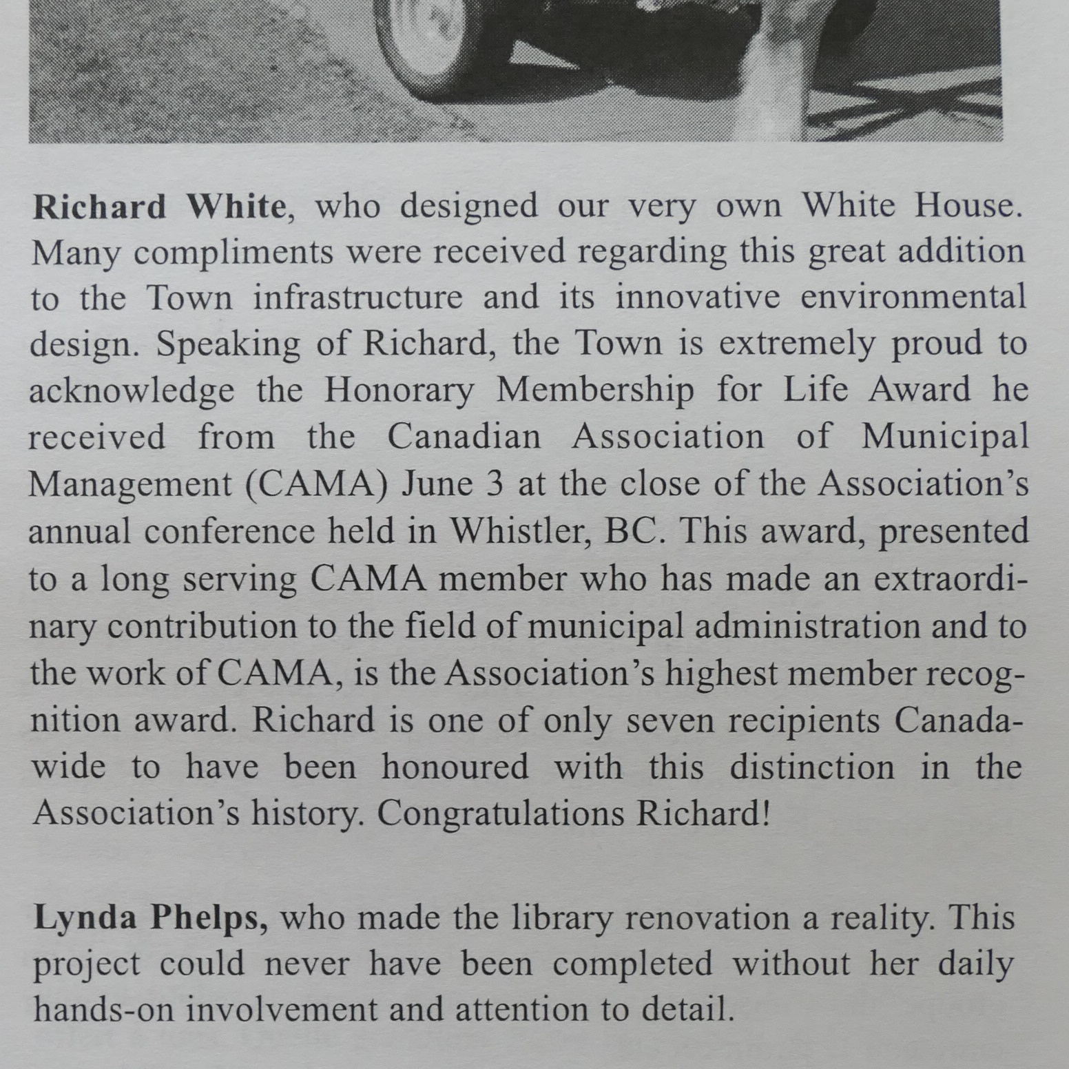 Who is R. White? Richard White was Baie-D'Urfé's Director General (DG) from 1986 until his retirement in 2010. Before becoming DG he was responsible for technical services and building inspection at the Town of Baie-D'Urfé. He was hired by the town in 1984. His excellent work was appreciated and Baie-D’Urfé was deeply saddened when he left in 2010. He was a competent engineer and manager. He had also a good sense of humor. He came back on an interim basis in 2012 when his successor had left after only a few months on the job.